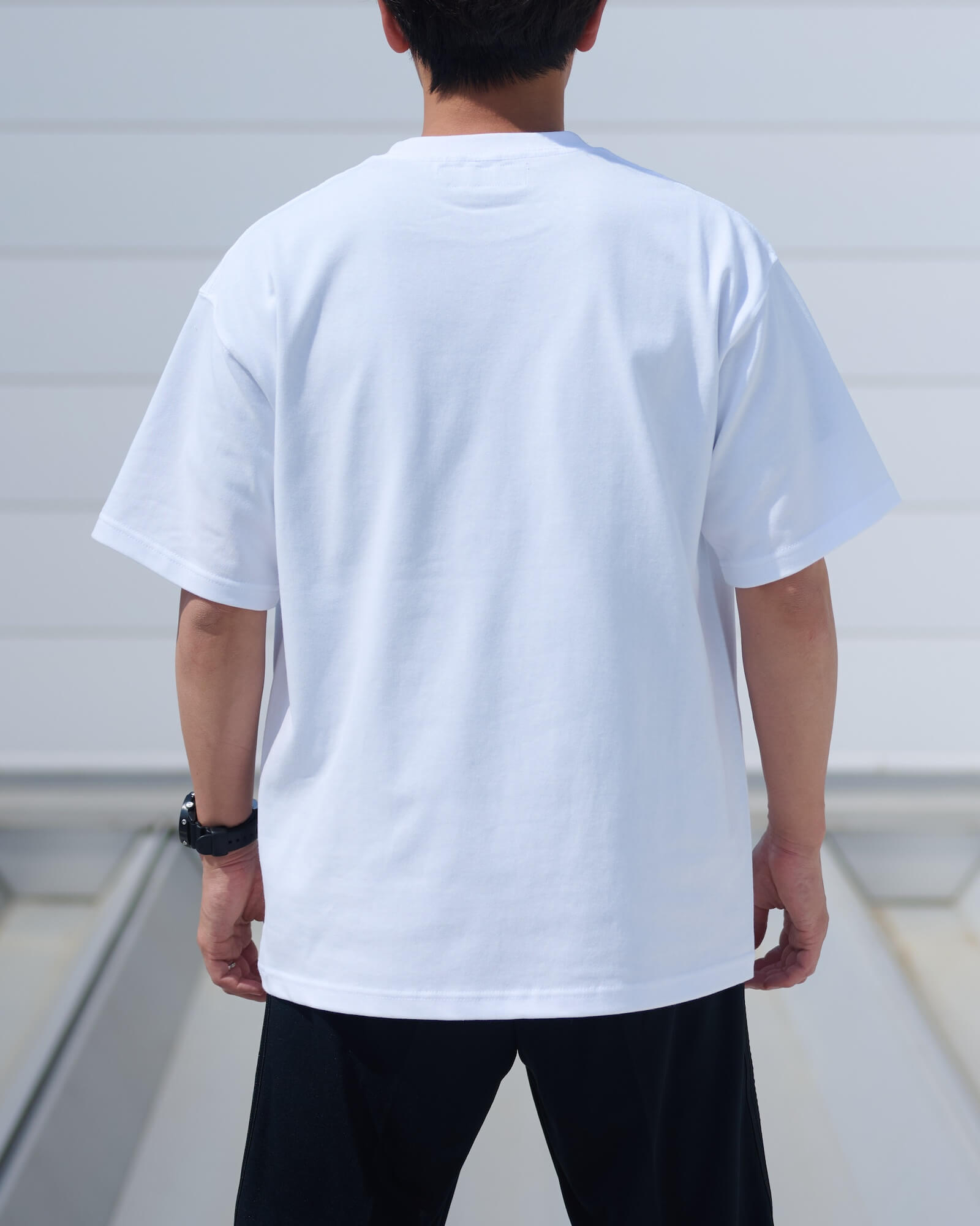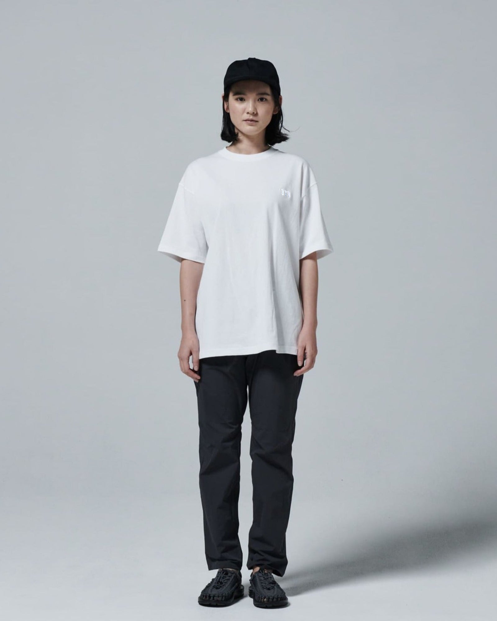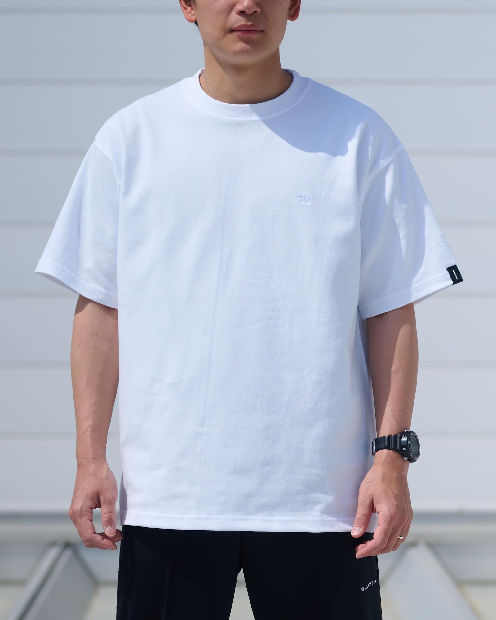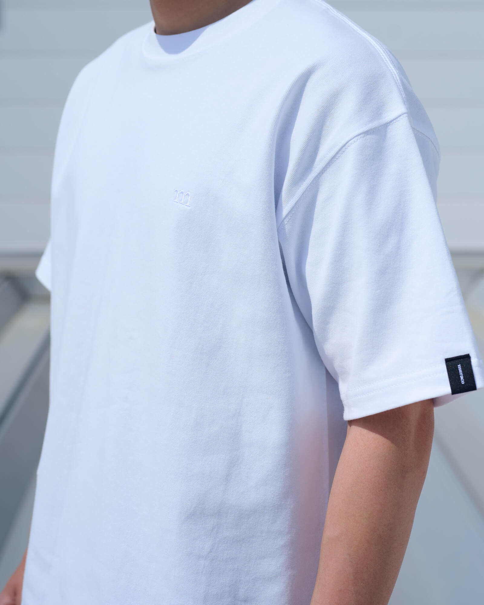 mロゴを刺繍で左胸に施したビッグシルエットのTシャツです。シャリ感のあるオープンエンド双糸を超極厚に編み立てたヘヴィーデューティーなTシャツです。左袖にはブランドピスネームを縫付。