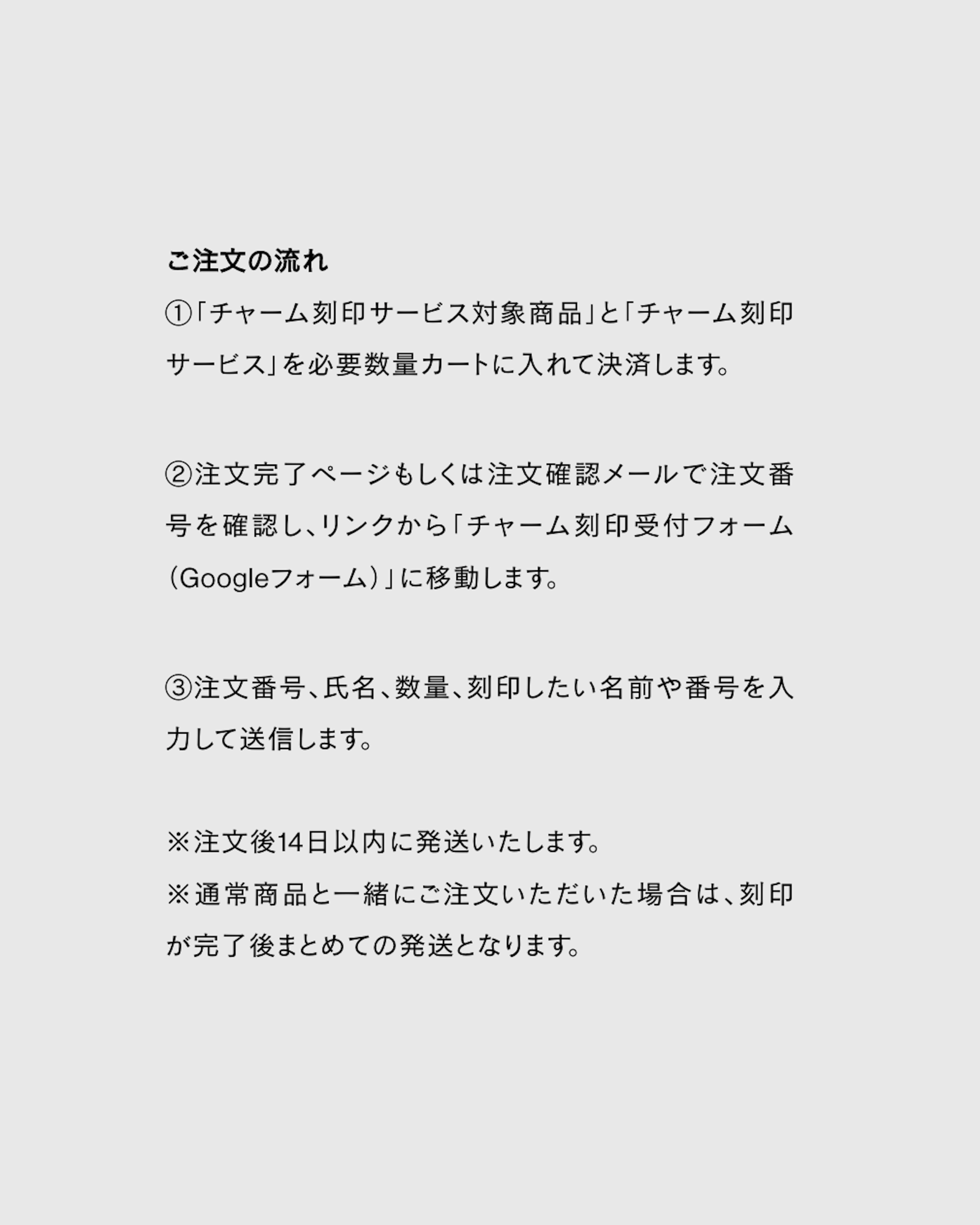 ※通常商品と一緒に注文した場合、チャーム刻印完了後にまとめて発送いたします。