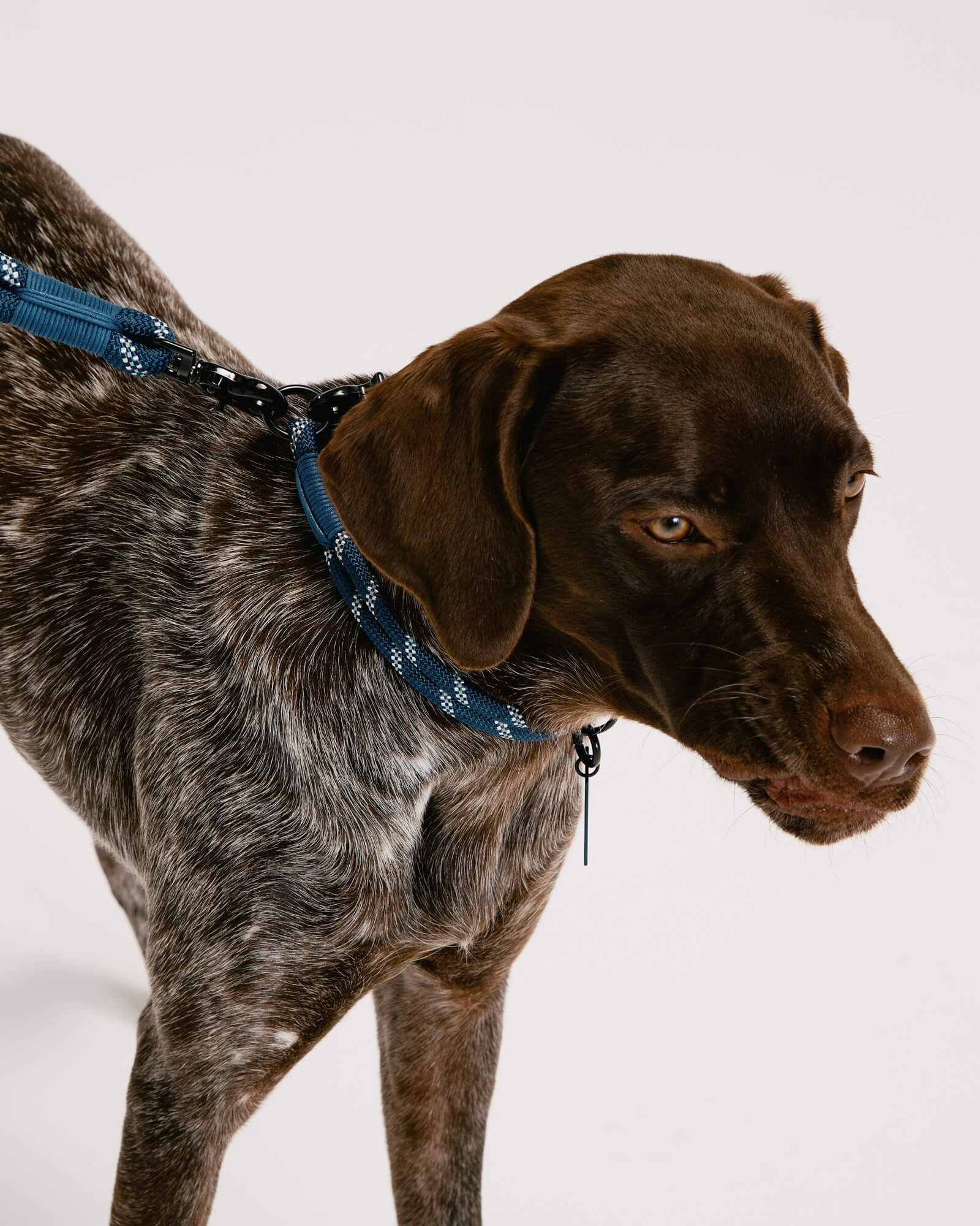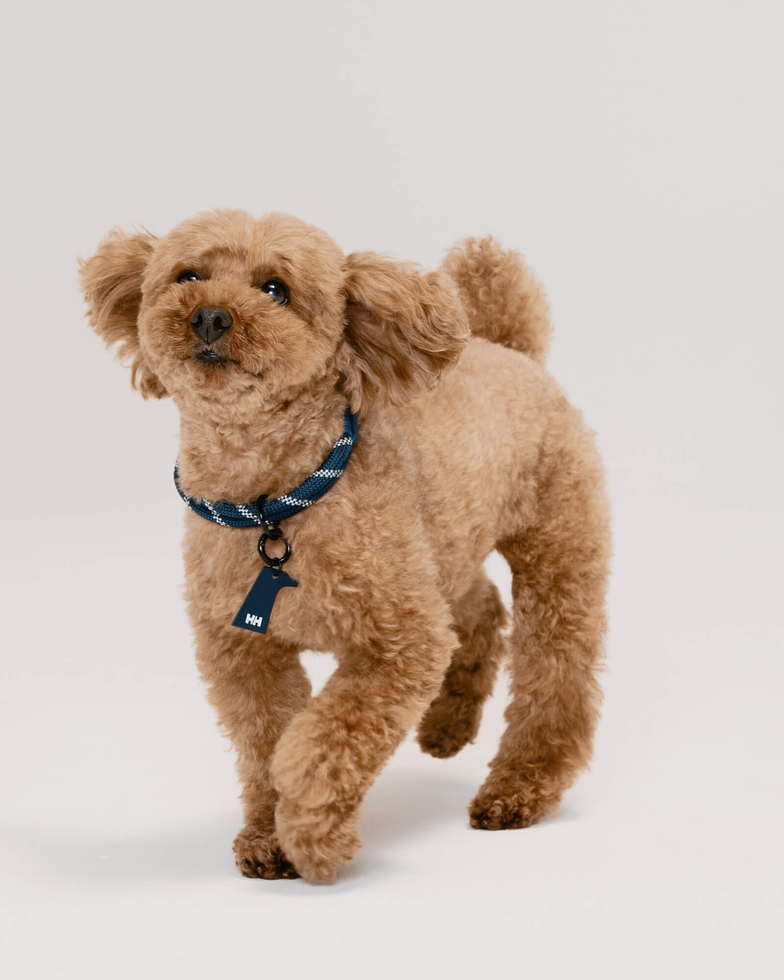 Gris定番のカラーをHELLY HANSEN別注色で仕上げました。リフレクターを編み込むことで、夜間のお散歩時の視認性を高めています。ロープは適度に伸縮性があり、急な引っ張りの衝撃を和らげます。カラー(首輪)と同色・同素材でコーディネートできます。HELLY HANSEN別注チャームが付属しています。