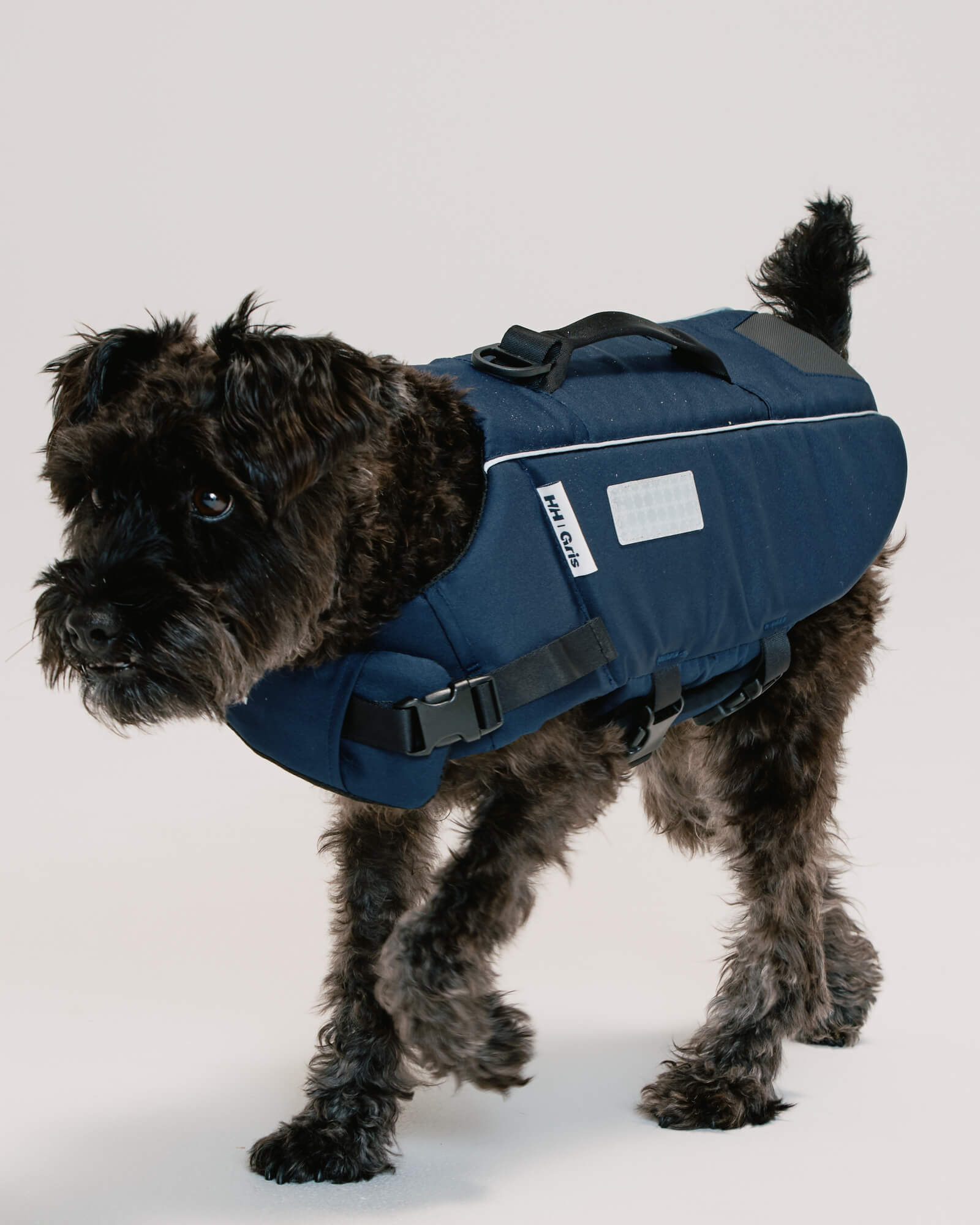 耐久性に優れたCORDURA®ポリエステルを採用したフローティングベストです。浮力材をパネル状にカットすることで愛犬へのフィット感を高め、ウエストと首周りはバックルにて調節が可能です。リフレクトサイトのワッペンを設けることで、愛犬との海遊びや水遊びでの視認性を高めています。