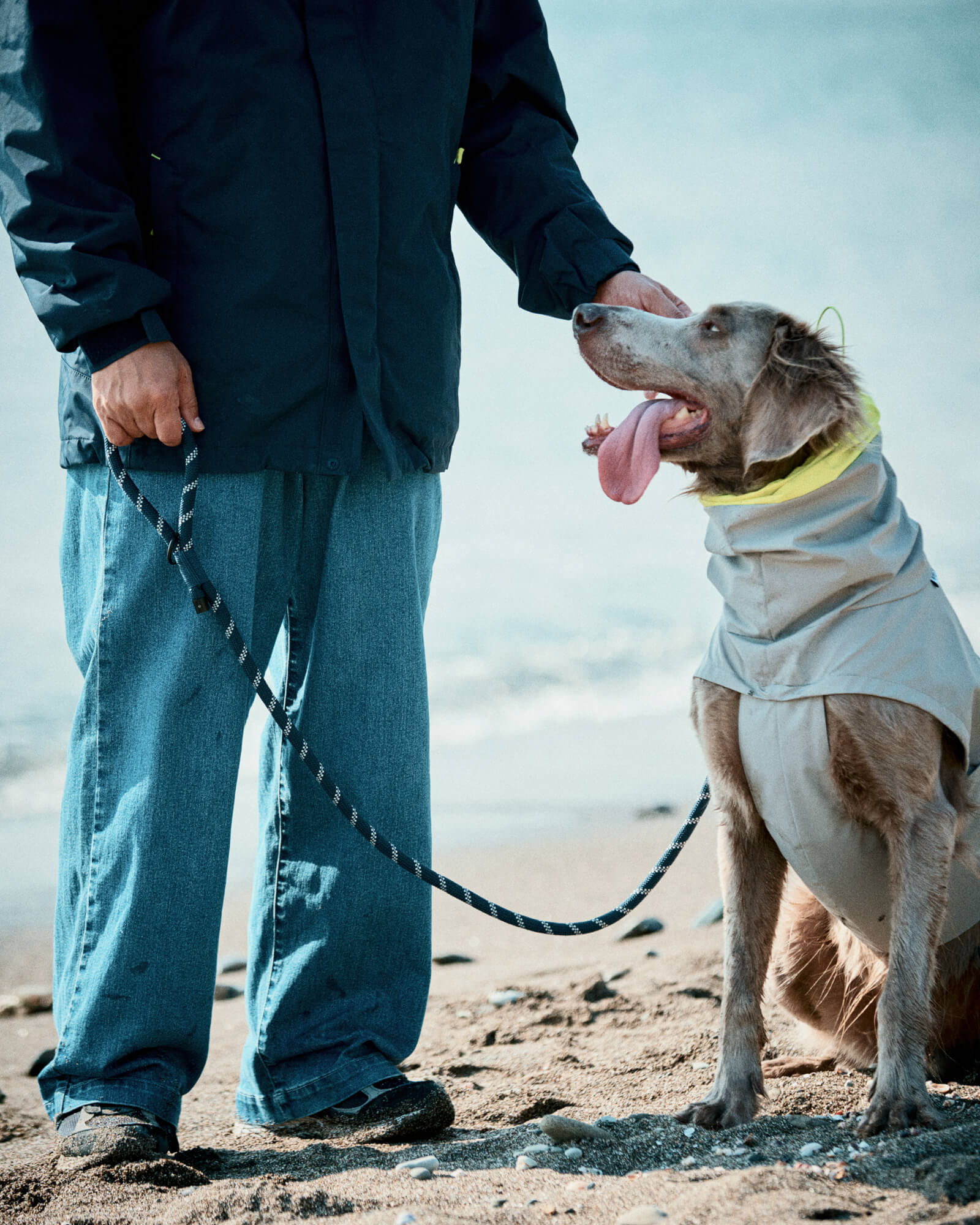 Gris定番のハンドリーシュをHELLY HANSEN別注色で仕上げました。リフレクターを編み込むことで、夜間のお散歩時の視認性を高めています。カラー(首輪)と同色・同素材でコーディネートできます。ロープは適度に伸縮性があり、急な引っ張りの衝撃を和らげます。HELLY HANSEN別注のチャームが付属しています。