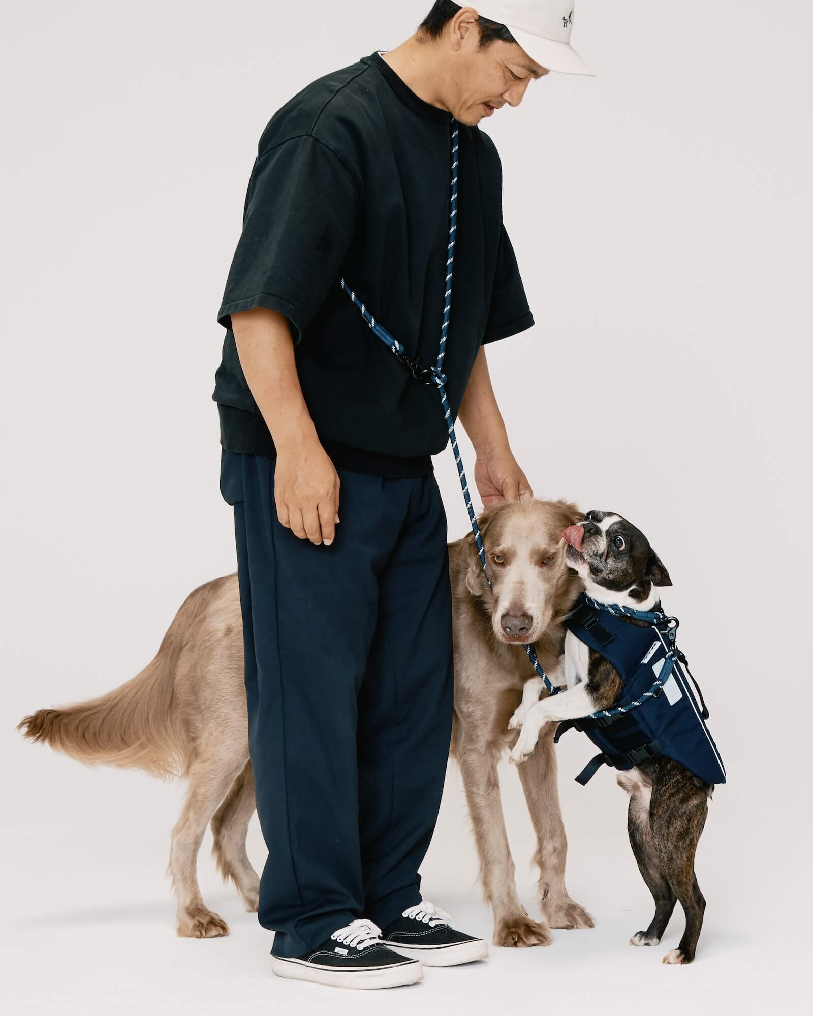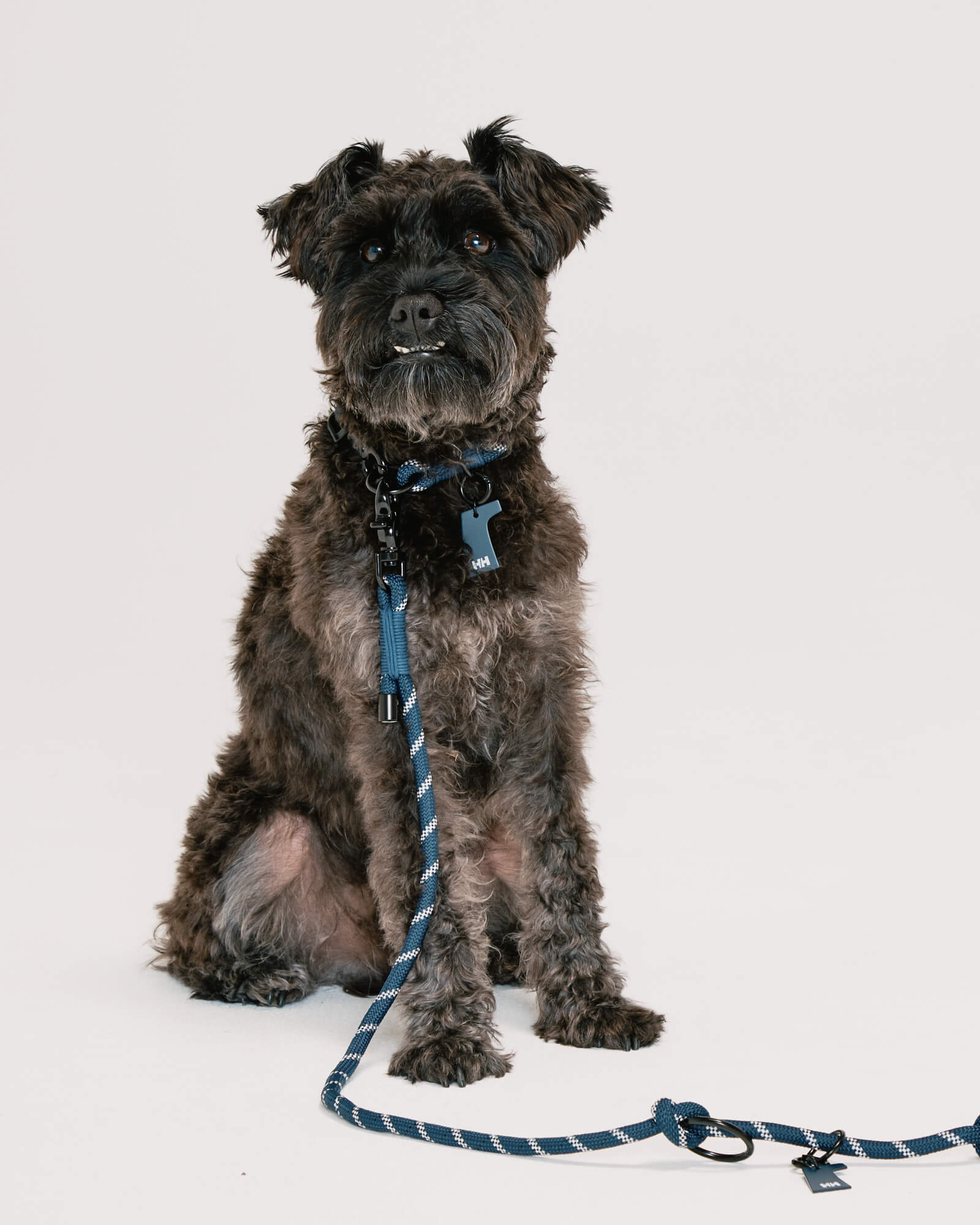 Gris定番のショルダーリーシュをHELLY HANSEN別注色で仕上げました。肩に斜め掛けすることでハンズフリーでお散歩できます。適度に伸縮性があるアウトドア用のロープを採用しており急な引っ張りの負担を和らげます。 ロープの結び目の位置やナスカンの位置を調整することで「手持ち」「斜め掛け」「2頭引き」の3WAYで使用可能。リフレクターを編み込むことで、夜間のお散歩時の視認性を高めています。カラー(首輪)と同色・同素材でコーディネートできます。HELLY HANSEN別注のチャームが付属しています。