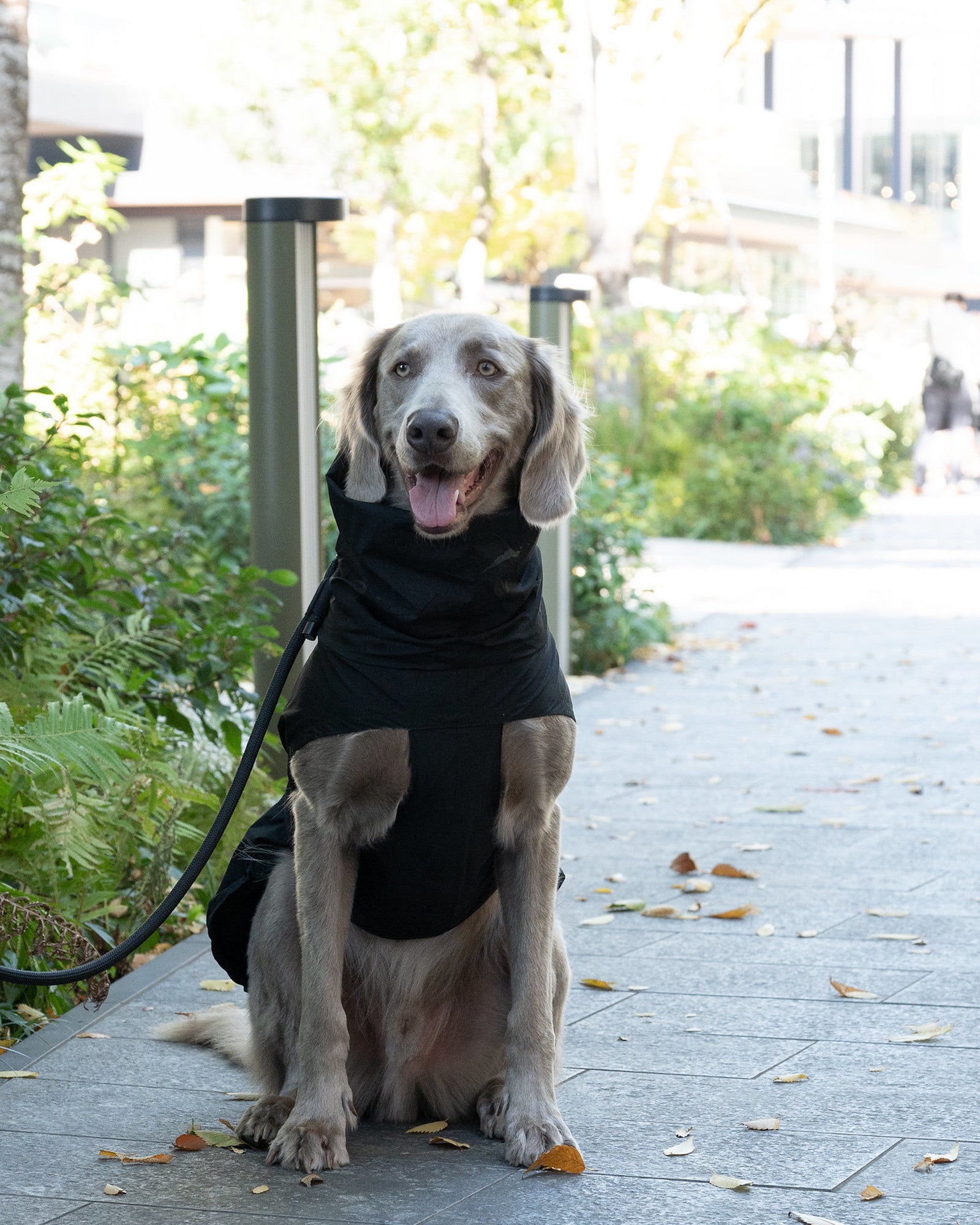 - 伸縮性のある生地と裾のドローコードにより犬の体にフィット
