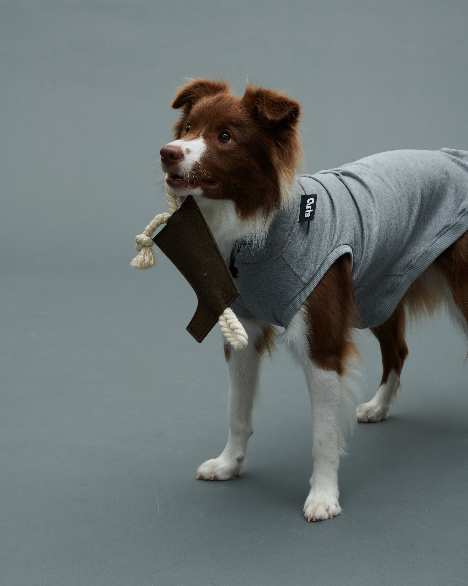 コットンロープにロゴマークのフェルトが付いたおもちゃです。噛んで引っ張って丈夫な歯を作ります。愛犬との引っ張りっこによるコミュニケーションに最適です