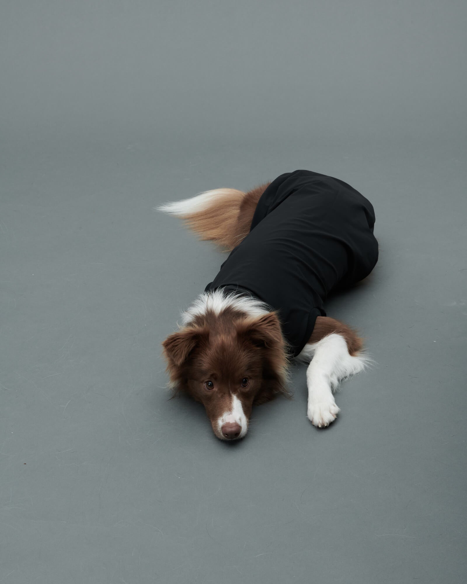 伸縮性と保温性を兼ね備えたダンボール生地をベースに背中側を軽量で撥水性のあるSOLOTEX®︎でカバーし、散歩中の小雨に対応します。muracoのアパレル「ROB SWEAT」と同じデザインで作られており、愛犬とのリンクコーディネートも楽しめます。