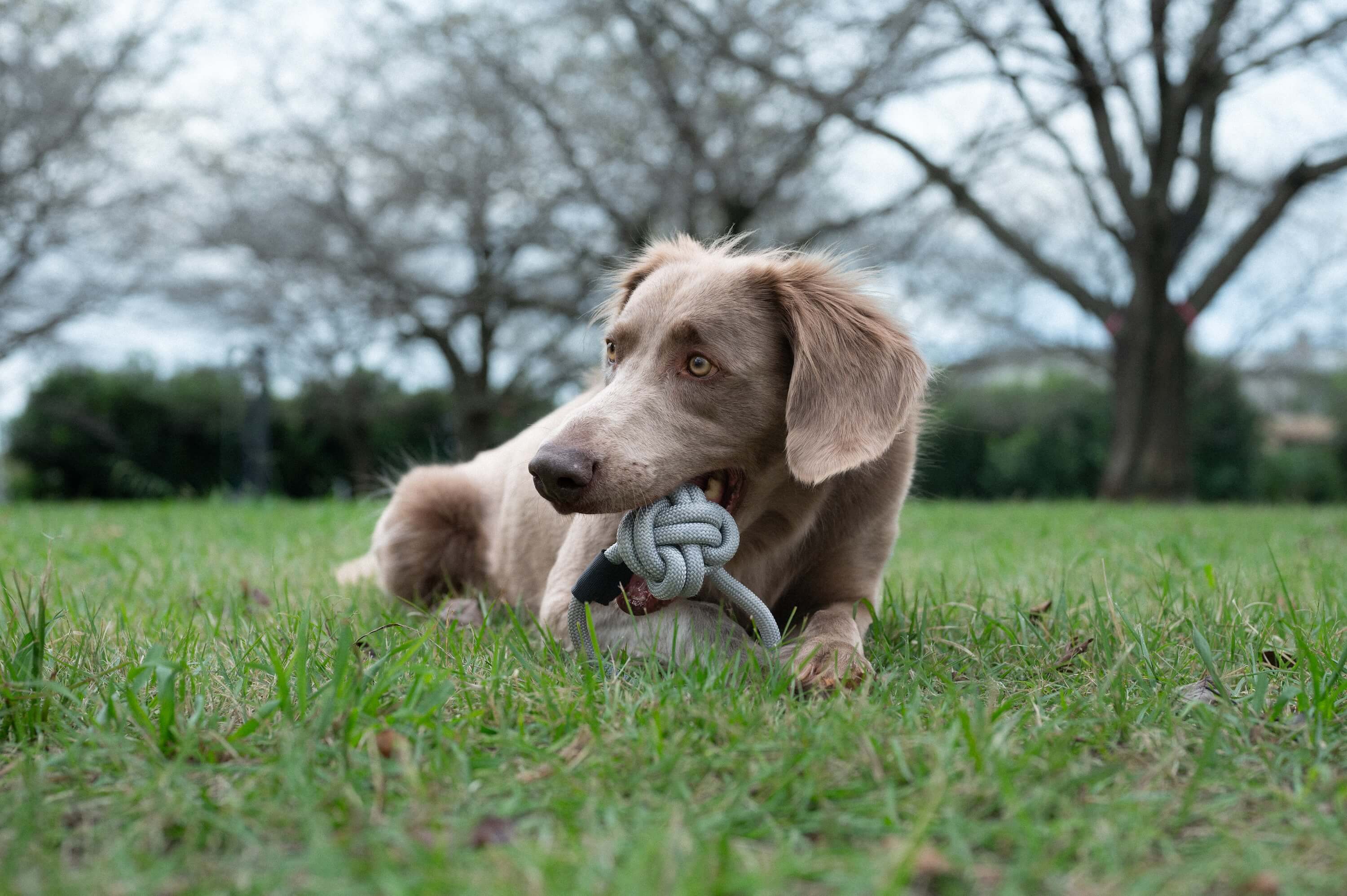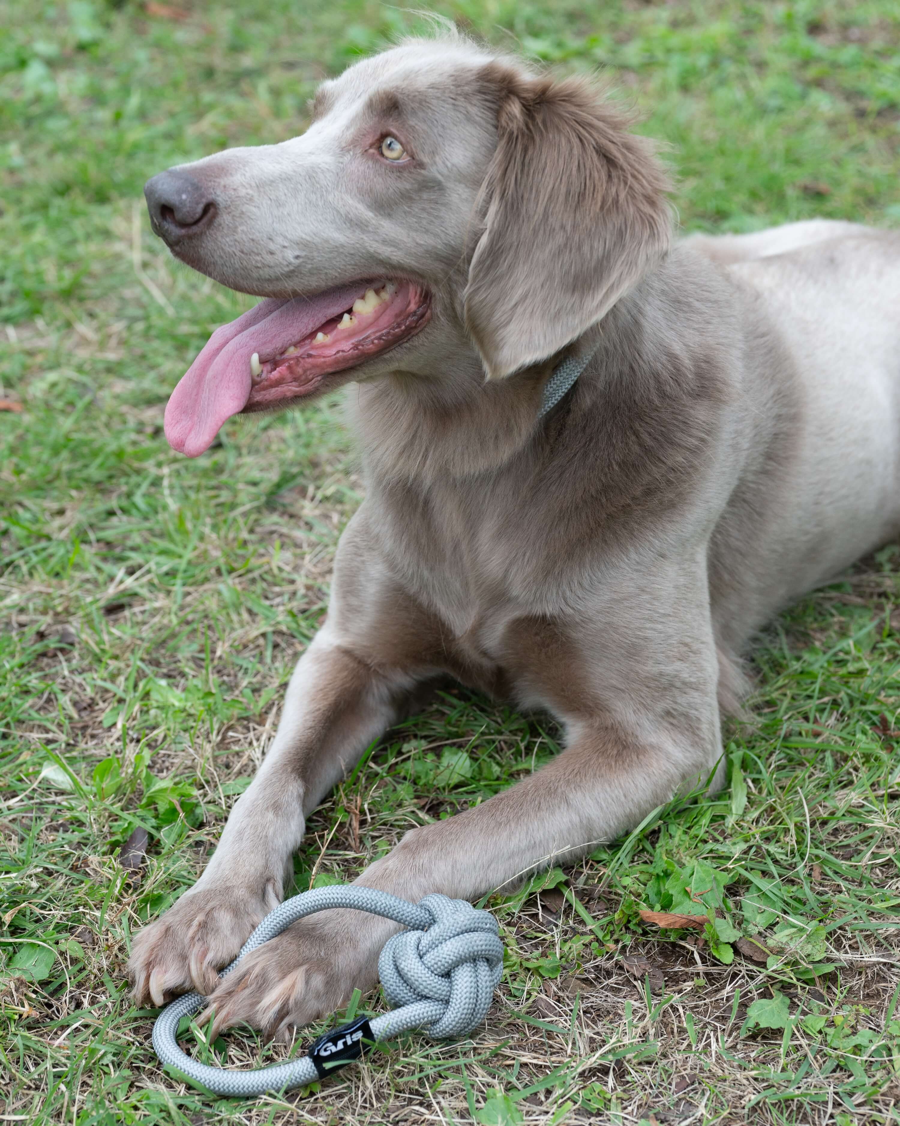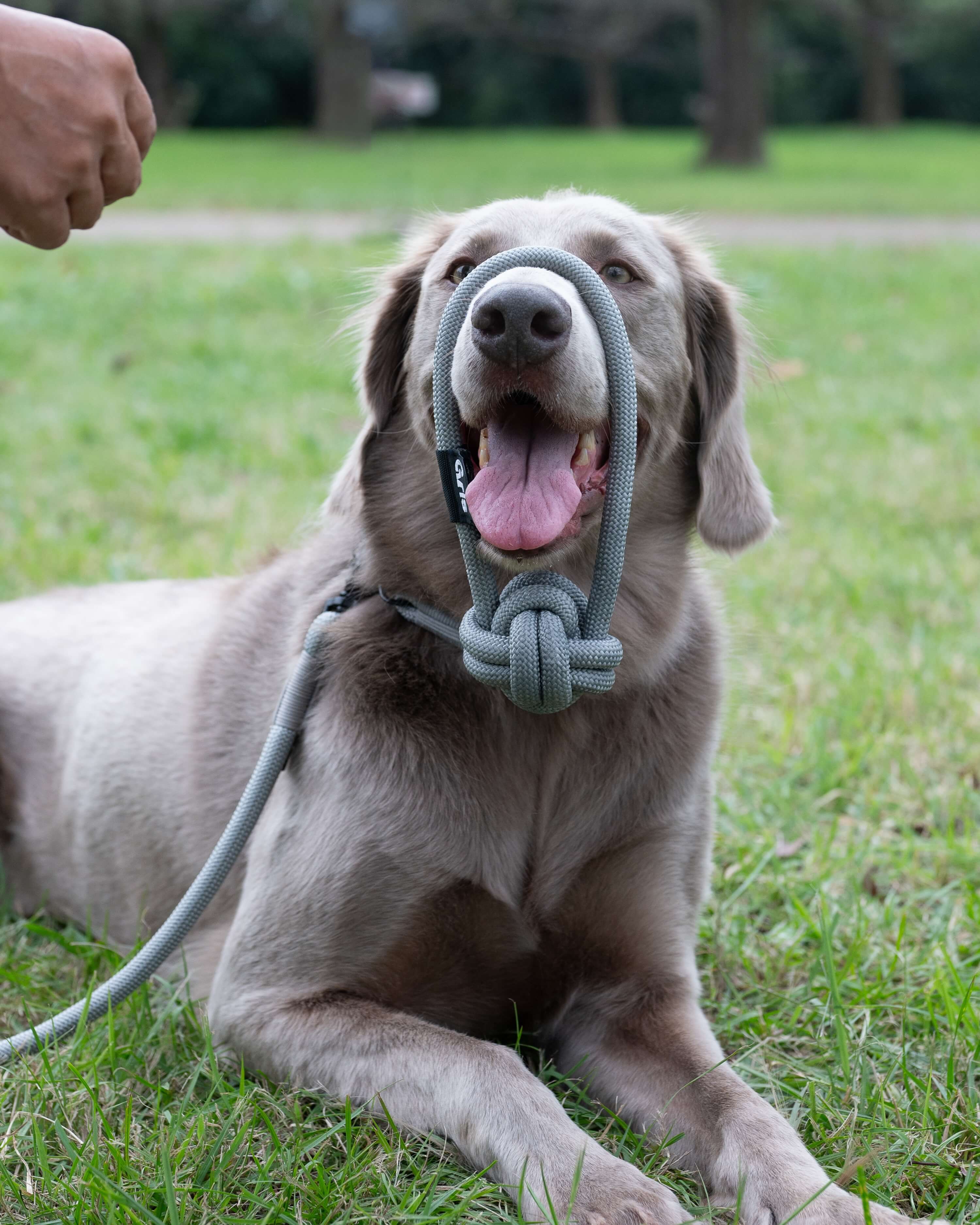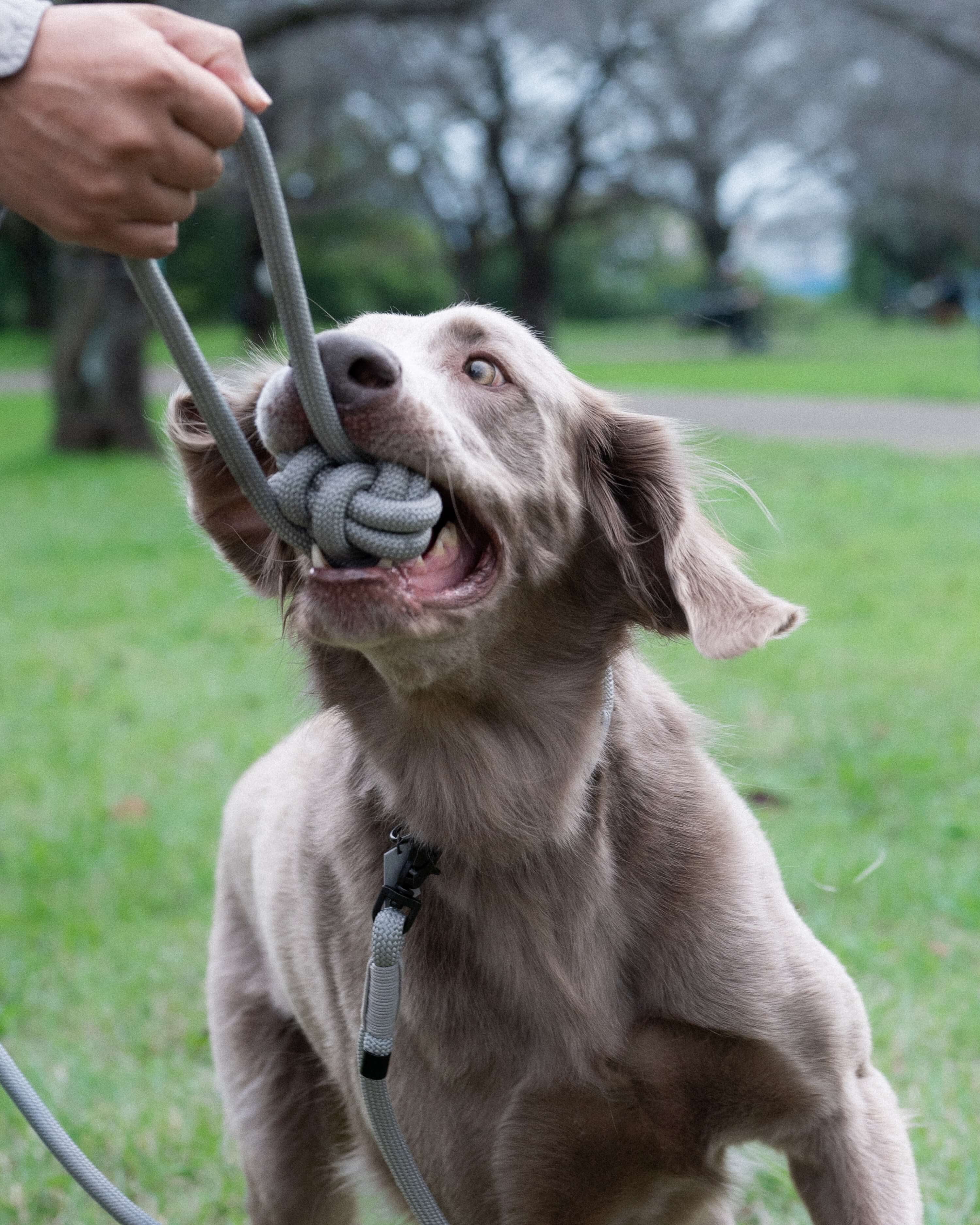 GrisのTHE LEASHシリーズと同じロープから編んだ犬のおもちゃ。不良品のリーシュからアップサイクルしたプロダクトです。じっくり噛んだり、ひっぱりっこやとってこい遊びができる耐久性に優れたおもちゃ。犬との絆作りに最適なプロダクトです。