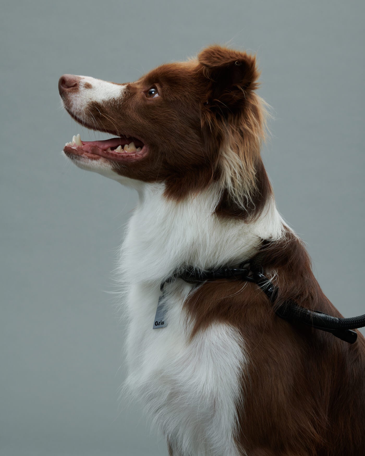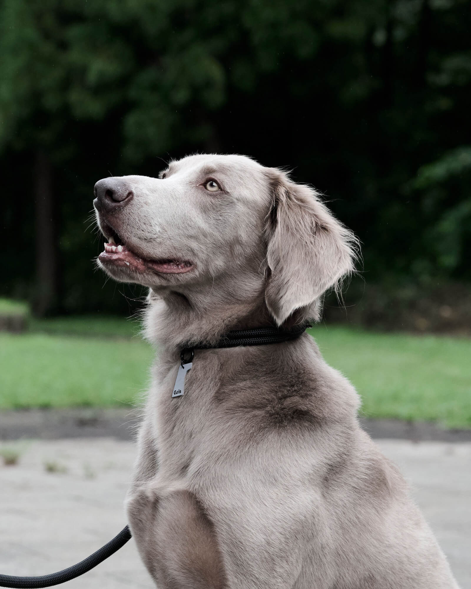 アウトドア用のロープを使用したカラー。適度に伸縮性があり、首への負担を和らげます。リーシュと同素材のラインナップでコーディネートできます。Grisのオリジナルチャームが付属しています。6種類のサイズ展開です。