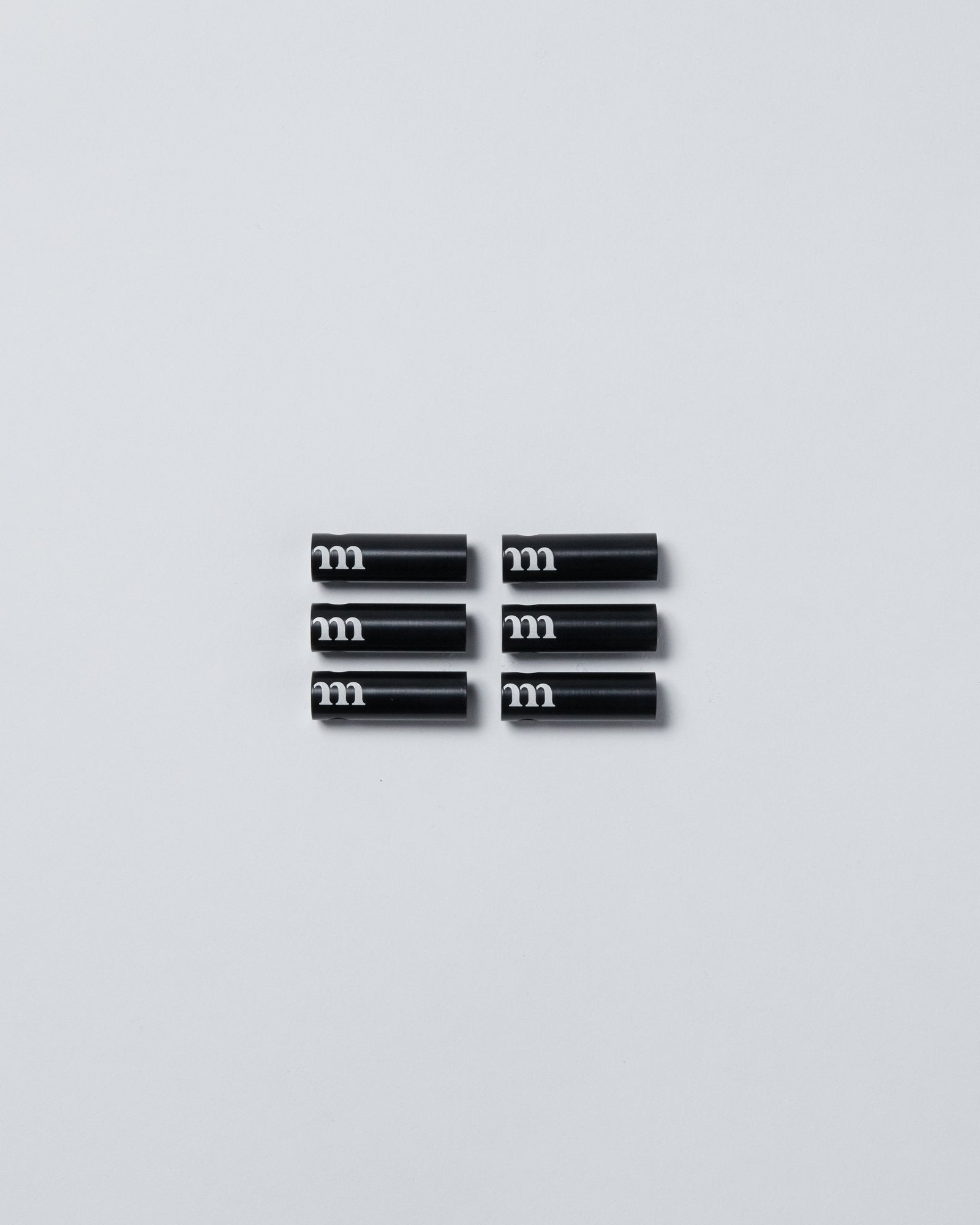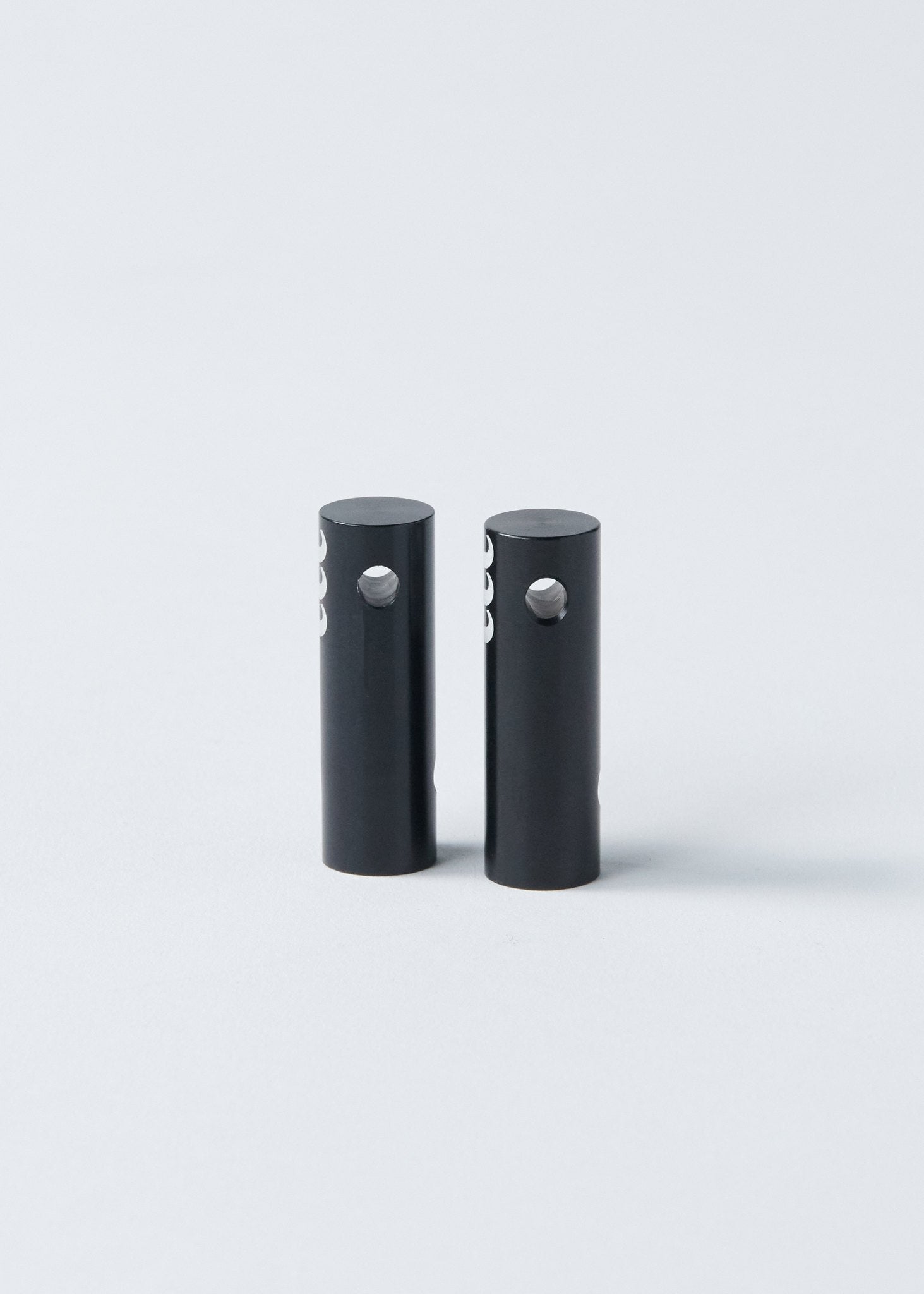 シリンダー形状のジュラルミンに高精度な切削加工を施し、 非常にスムーズなスライドを実現したテンショナー。 ロープ末端の結び目が隠れるミニマルなデザインです。6個セット。
