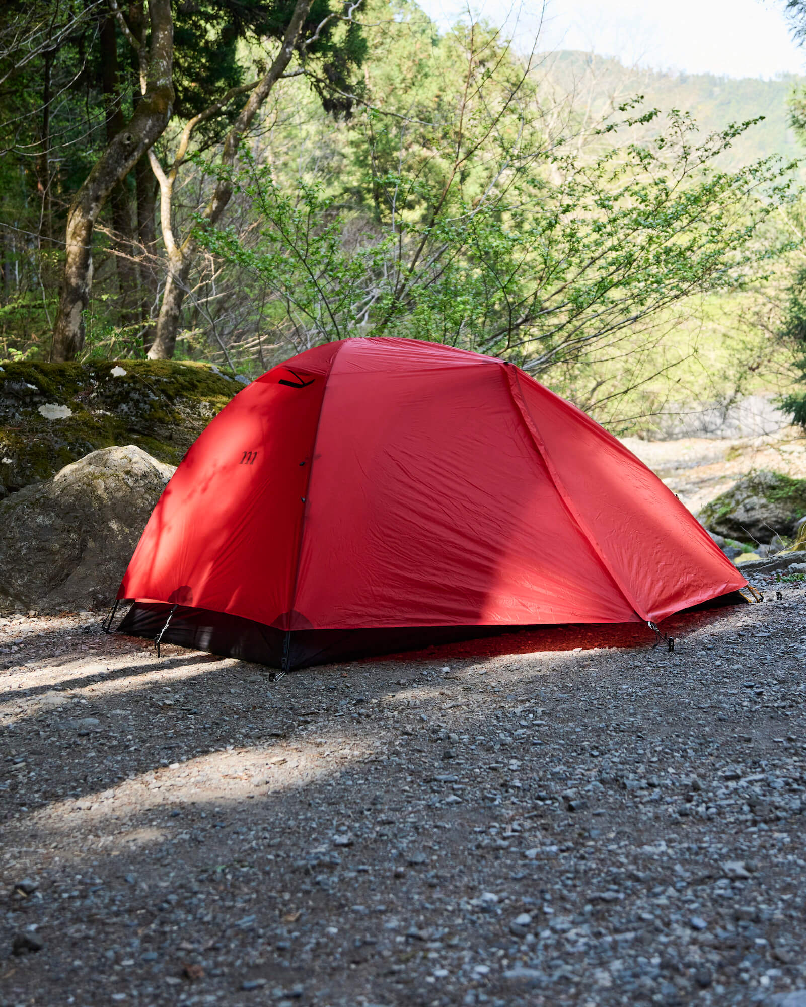RAPIDE X1の最も際立った特徴は、室内空間の広さと快適性と言えるでしょう。2人用のコンパクトなテントでありながらヘッドクリアランスが十分にあり、収納や通気性にも優れており、快適に過ごすことができます。
