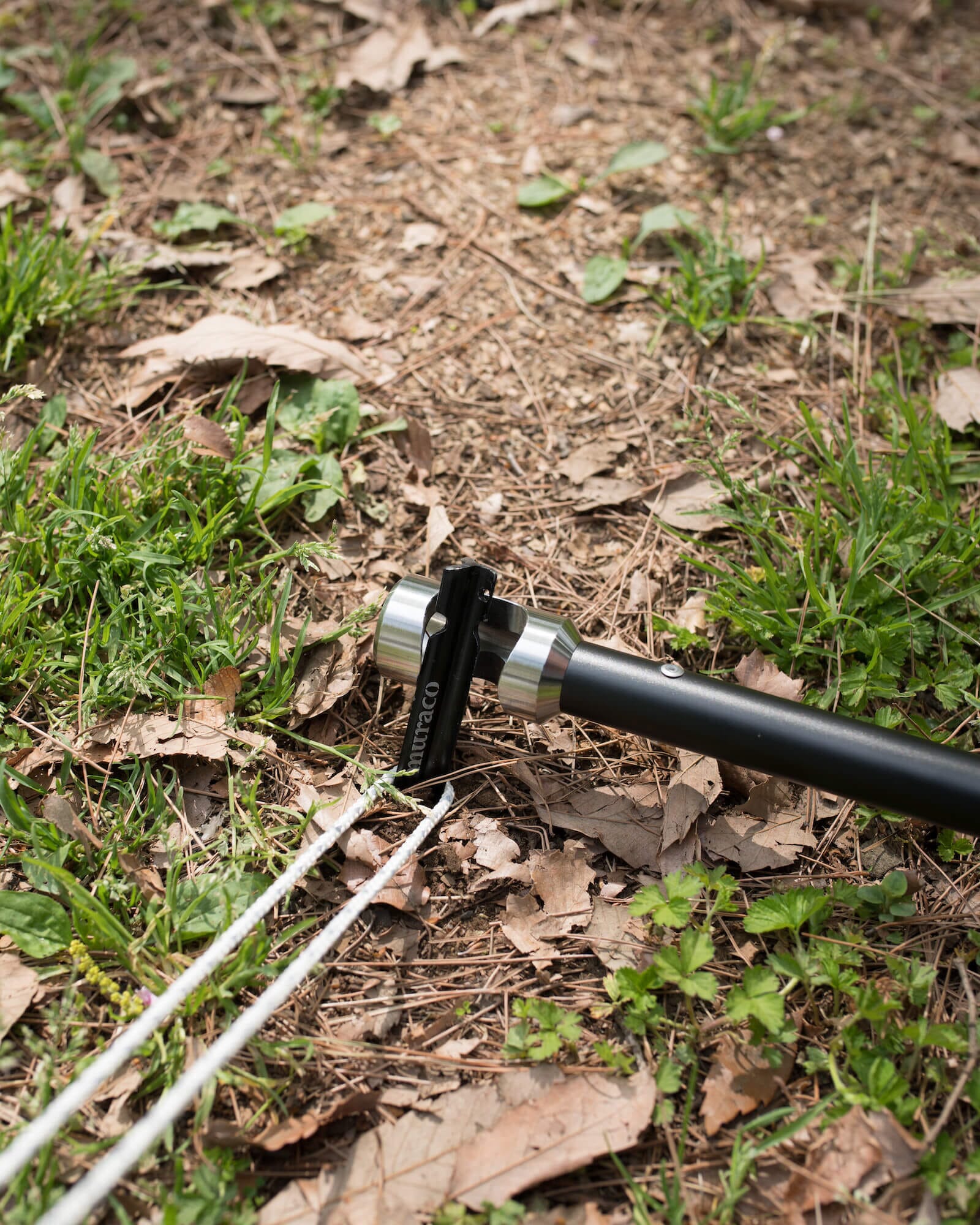 ペグを「打ち込む」「こじって緩める」「引っ掛けて抜く」の3WAY。栓抜きとしても使用可能。