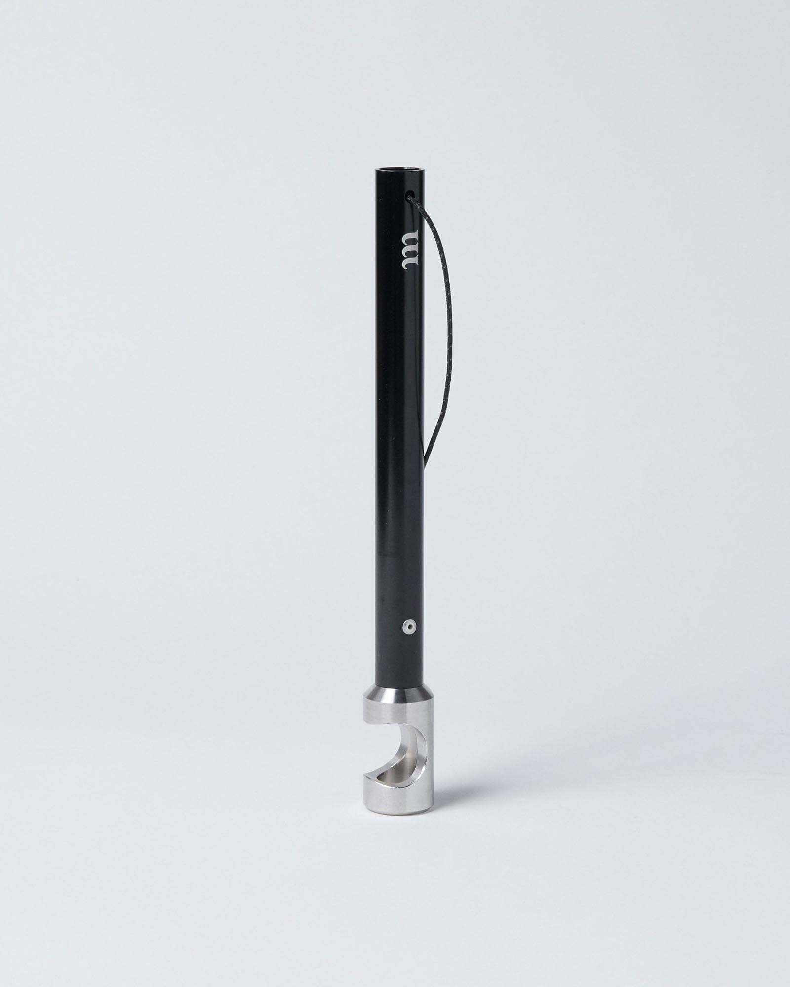 軽量性と収納性が特徴のペグハンマー。世界最大の鉄鉱石の産地であるブラジルの鉄鉱山、CARAJAS(カラジャス)の名を冠しています。 わずか236gの重量ながら、適度な重量配分により軽快な打ちやすさを実現。 従来のT字ではなくストレートな形状のヘッドにすることで優れた収納性を実現し、テントやタープと一緒に収納することができます。ヘッドはムラコ自社工場によりステンレスの切削加工でつくられ、ペグ抜きの機能も備えています。