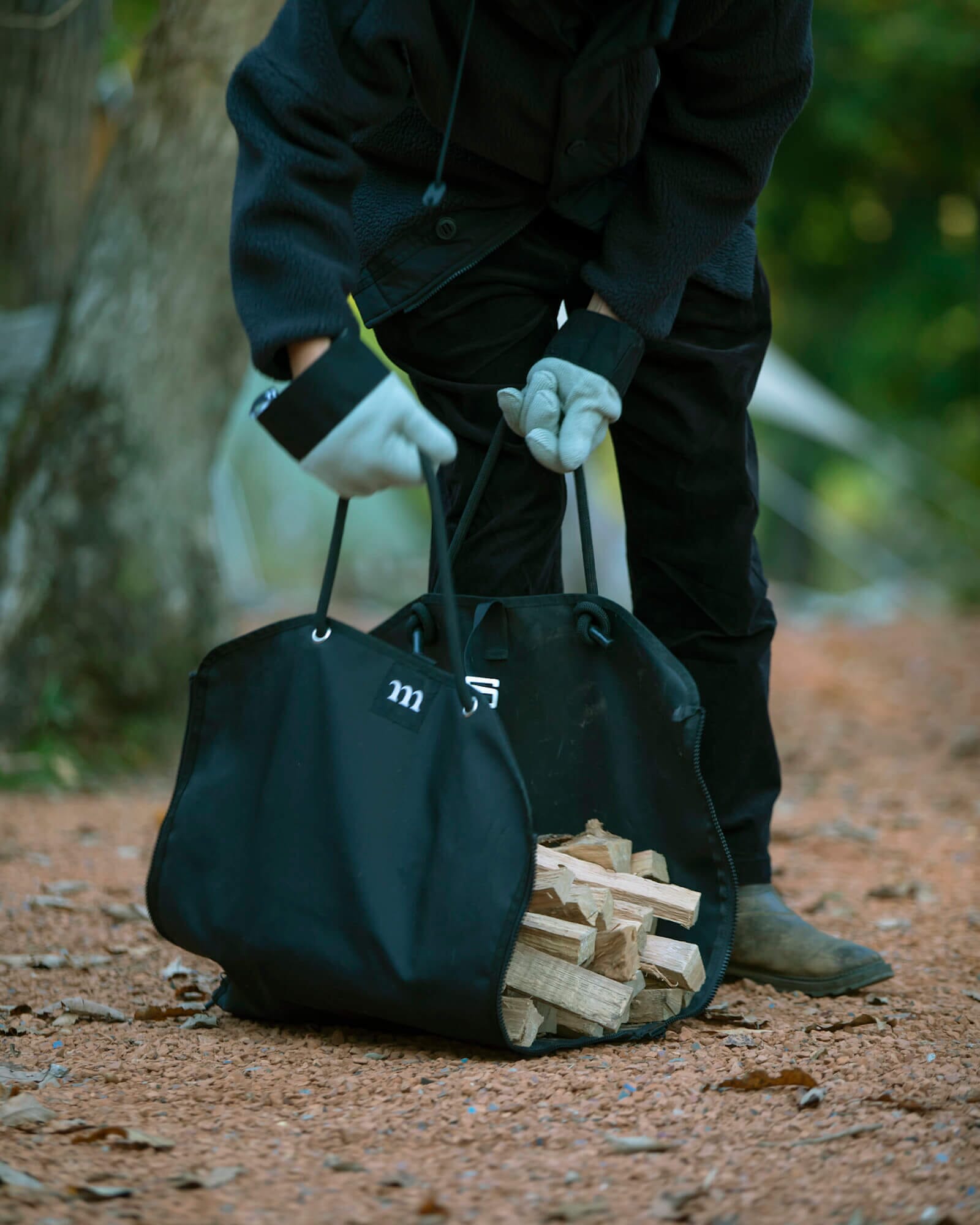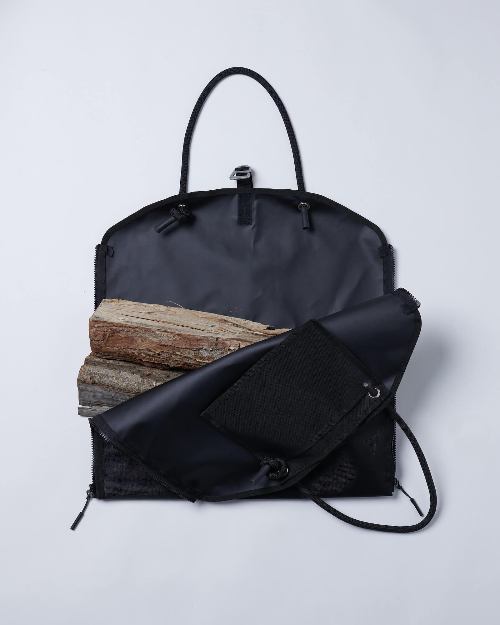 ファイヤーウッドキャリアーは、重量のある薪を楽に運べるキャリートートです。「SATELLITE FIRE BASE」や「GRILL MESH」の運搬にも適しています。サイドのジッパーをフルオープンにすれば薪バッグとして、閉めればトートバッグとして使用可能。小物の収納にも使えるポケットも付属しています。柔らかく手に食い込みにくいロープをハンドルに採用しました。