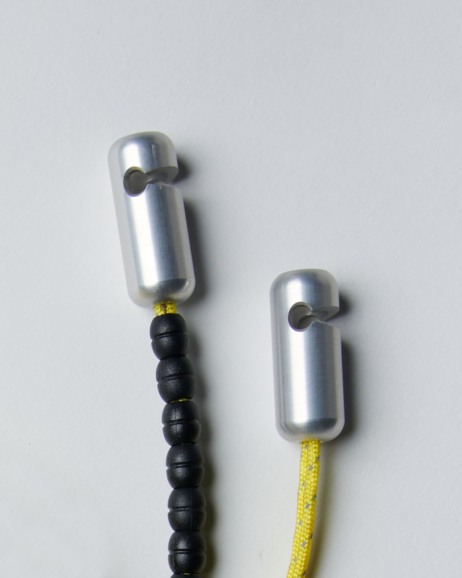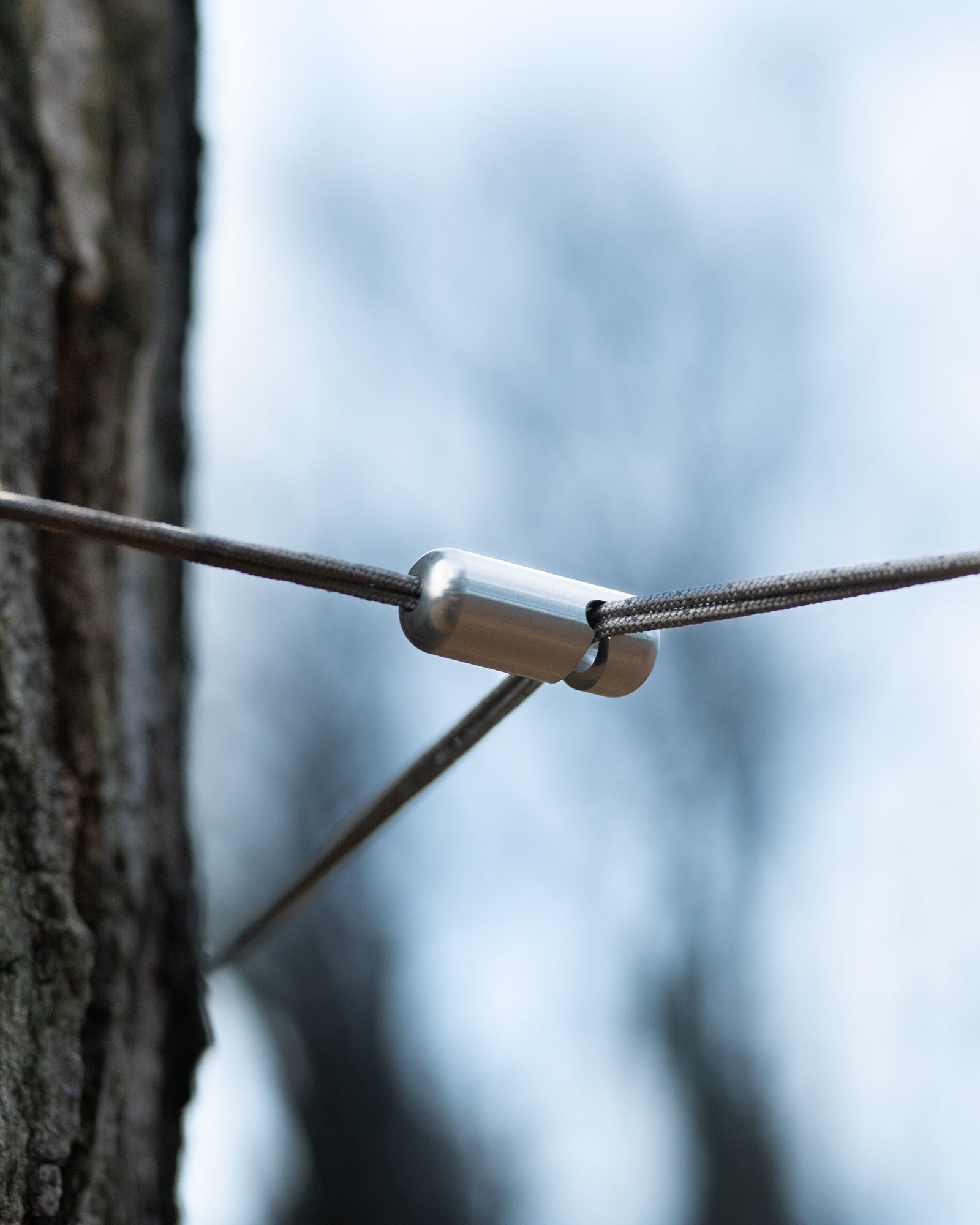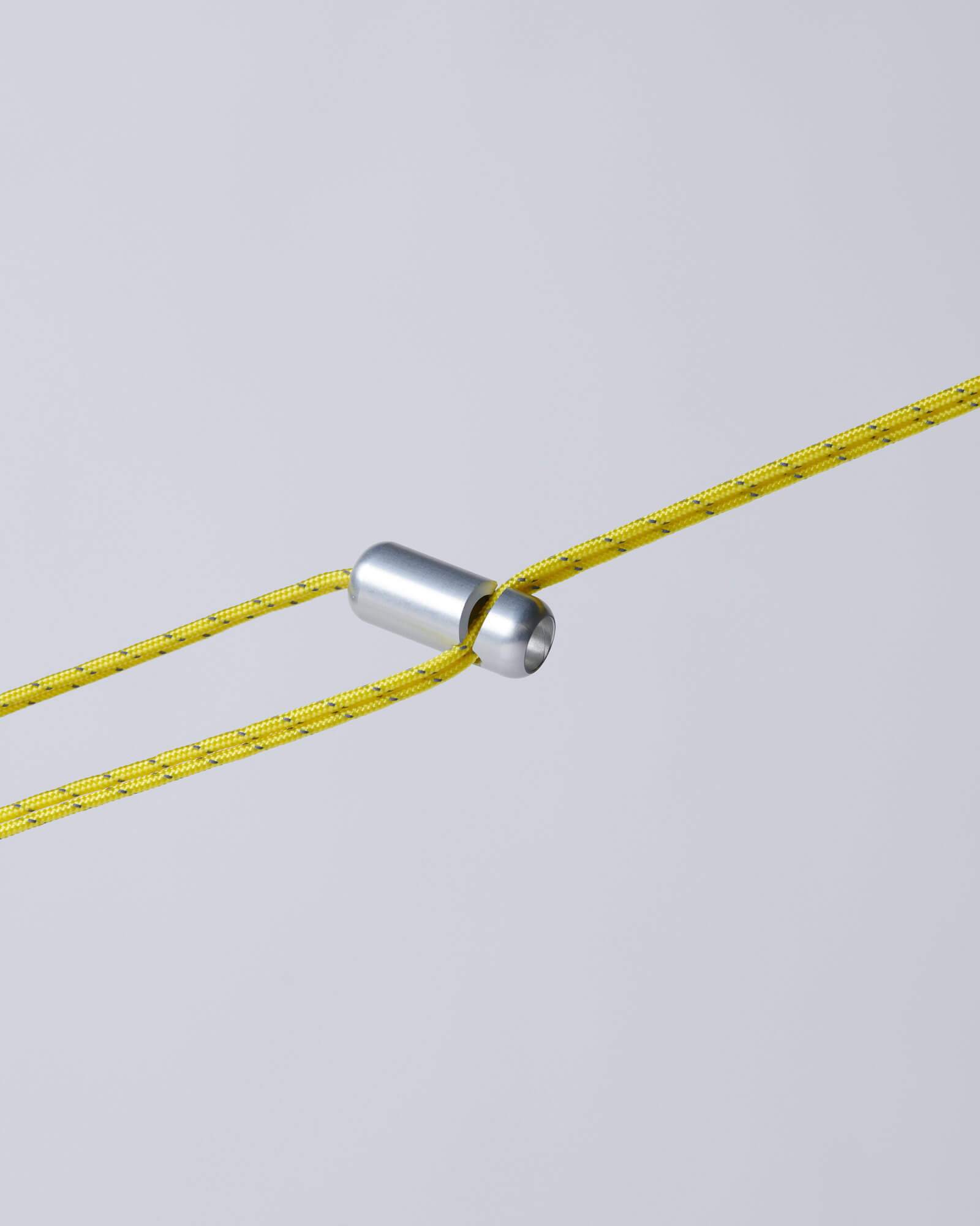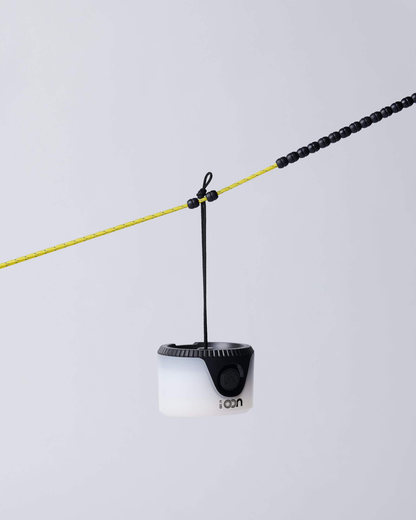 HANGING LINE (ハンギングライン)は、衣類の乾燥やランタンなどの小物収納に便利なコード。コードにフックを掛けスライドさせることで簡単にテンション調整ができます。テント内のループや、木・ポールに取り付けたり、タープのポール間でランタンを吊るすハンガーとしても使用可能。吊るす対象をビーズで挟みこむことでしっかりと固定できます。長さ3.6mと6mの2種類から選べます。イエローカラー。
