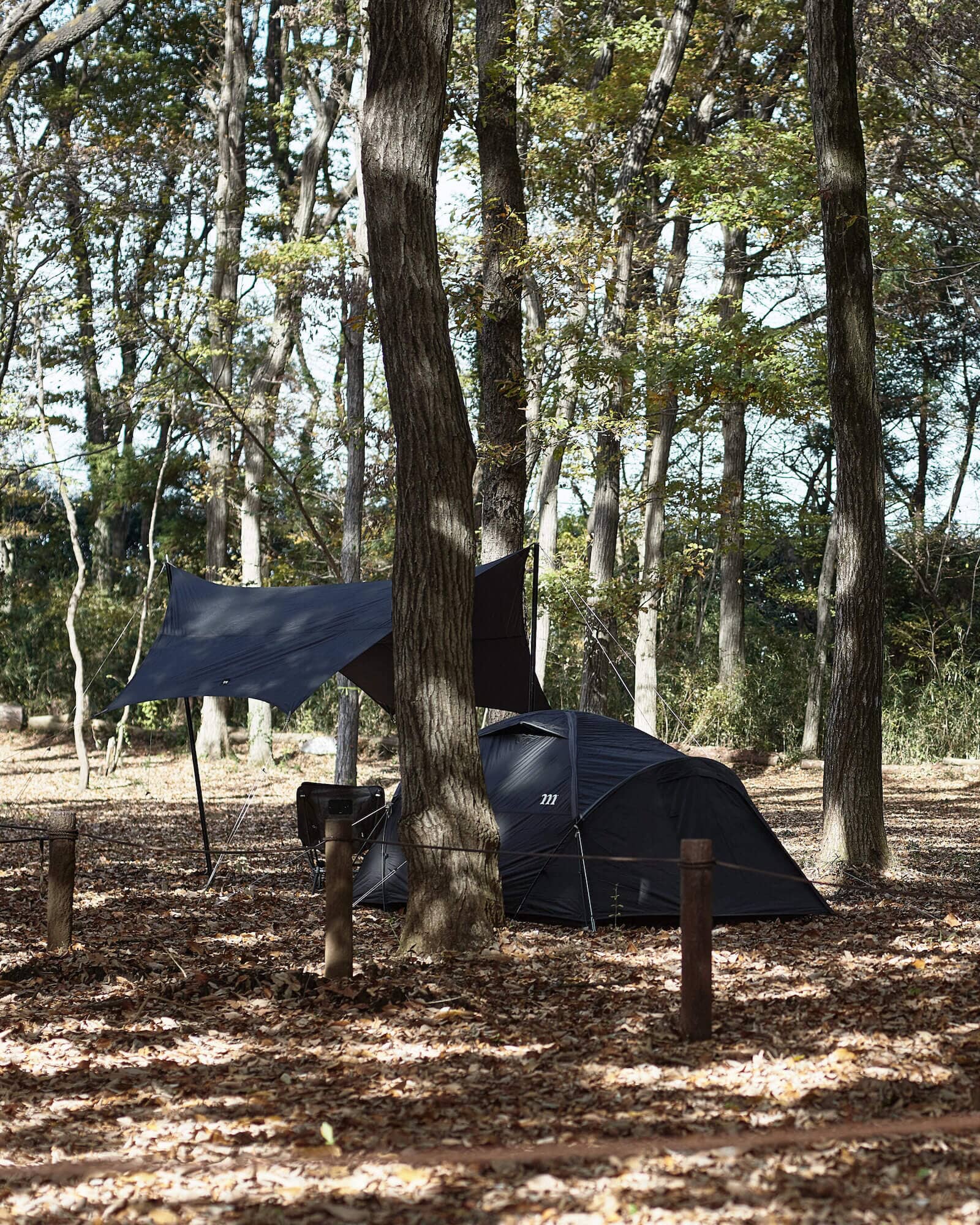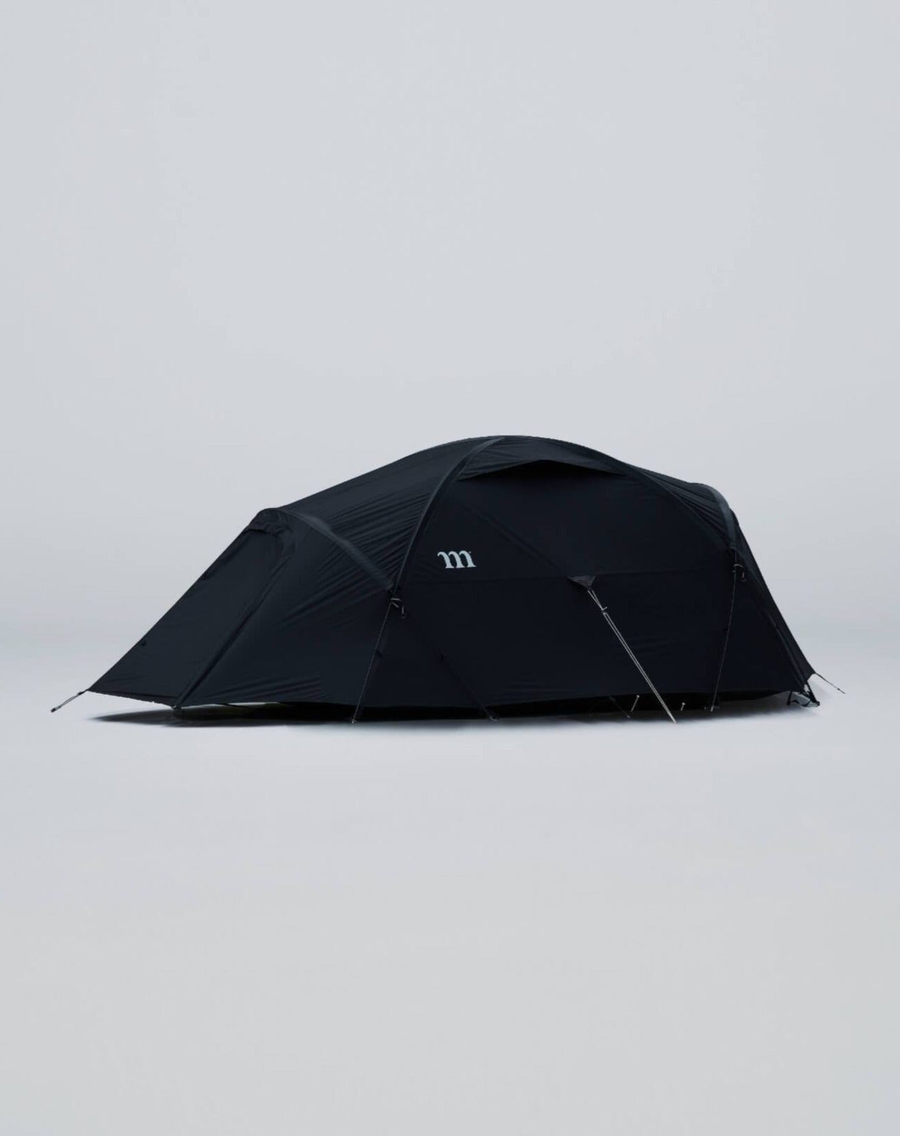 NORMは前後にそれぞれ出入口を配置しています。前室は台形で広い面積を確保し、就寝時に手元に置いておきたい荷物を格納する事ができます。後方のエントランスは出入口としての機能に特化しています。インナーテント内に座った状態でエントランスのジッパーの開閉が出来るように設計しています。就寝時に荷物で埋まった前室を通り抜ける事なく、後方のエントランスからスマートに出入りできます。またインナーテントのドアは解放時に内側のポケットに放り込む仕様となっており、開閉の時間を短縮します。