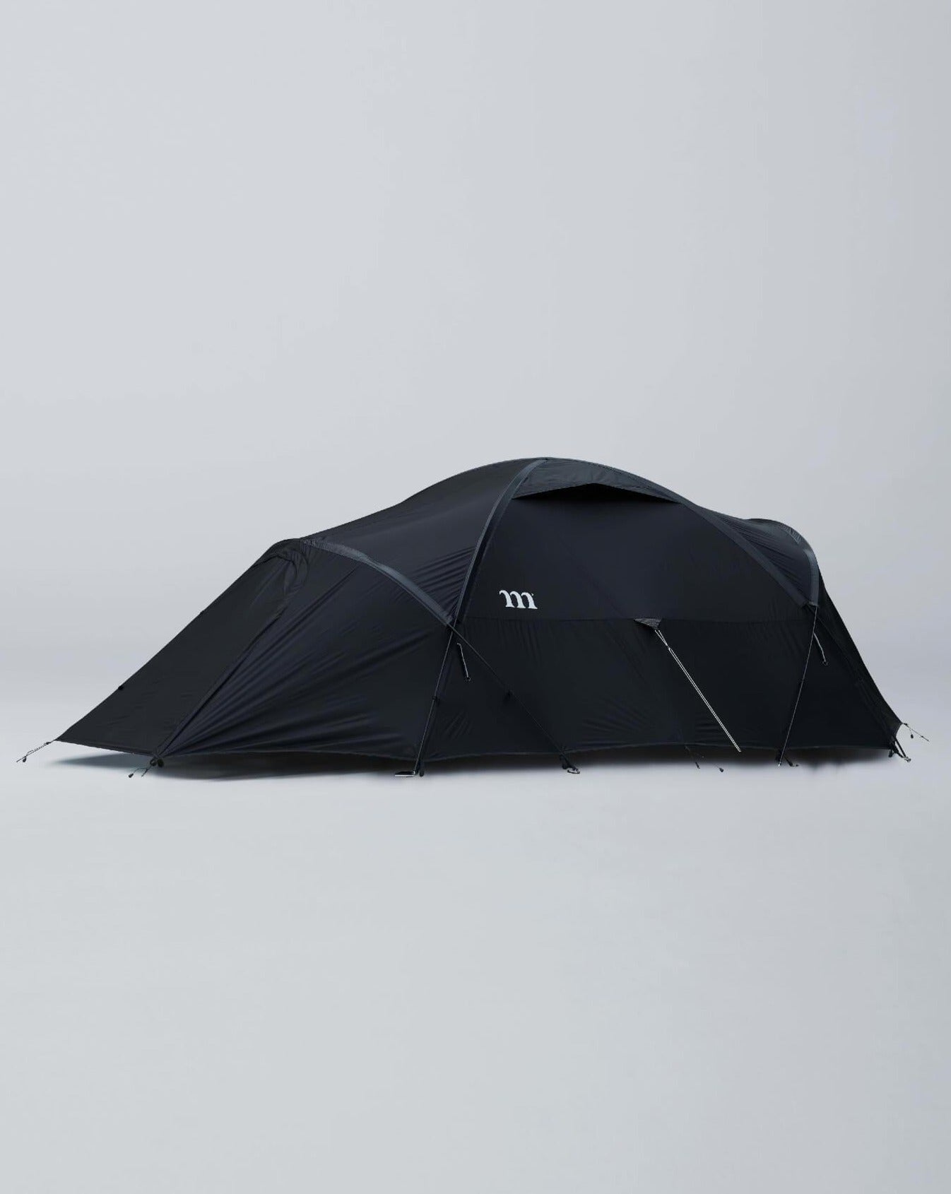 NORMは前後にそれぞれ出入口を配置しています。前室は台形で広い面積を確保し、就寝時に手元に置いておきたい荷物を格納する事ができます。後方のエントランスは出入口としての機能に特化しています。インナーテント内に座った状態でエントランスのジッパーの開閉が出来るように設計しています。就寝時に荷物で埋まった前室を通り抜ける事なく、後方のエントランスからスマートに出入りできます。またインナーテントのドアは解放時に内側のポケットに放り込む仕様となっており、開閉の時間を短縮します。