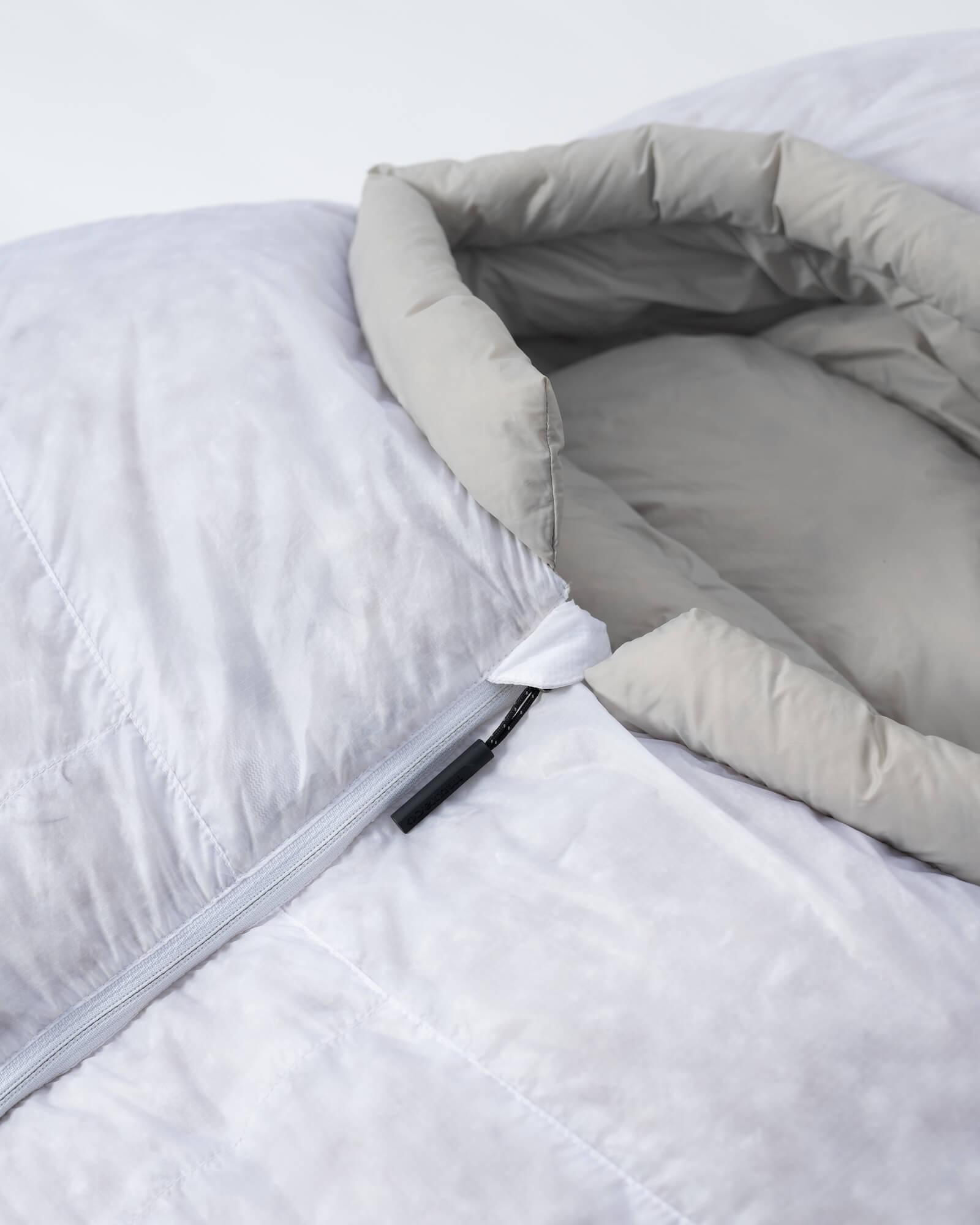 ジッパーの裏にテープを施すことで素早い動作でも布が噛みづらい仕様です。スリーピングバックを扱う際、極薄の生地をジッパーが噛み込み、開閉を行えなくなる懸念や強く噛み込んだ場合に、生地を傷める可能性があります。ジッパーの裏にナイロンテープを施し、噛み込み原因となる生地の発生軽減と、噛み込みが起きた際の“生地へのダメージ軽減”を実現しました。