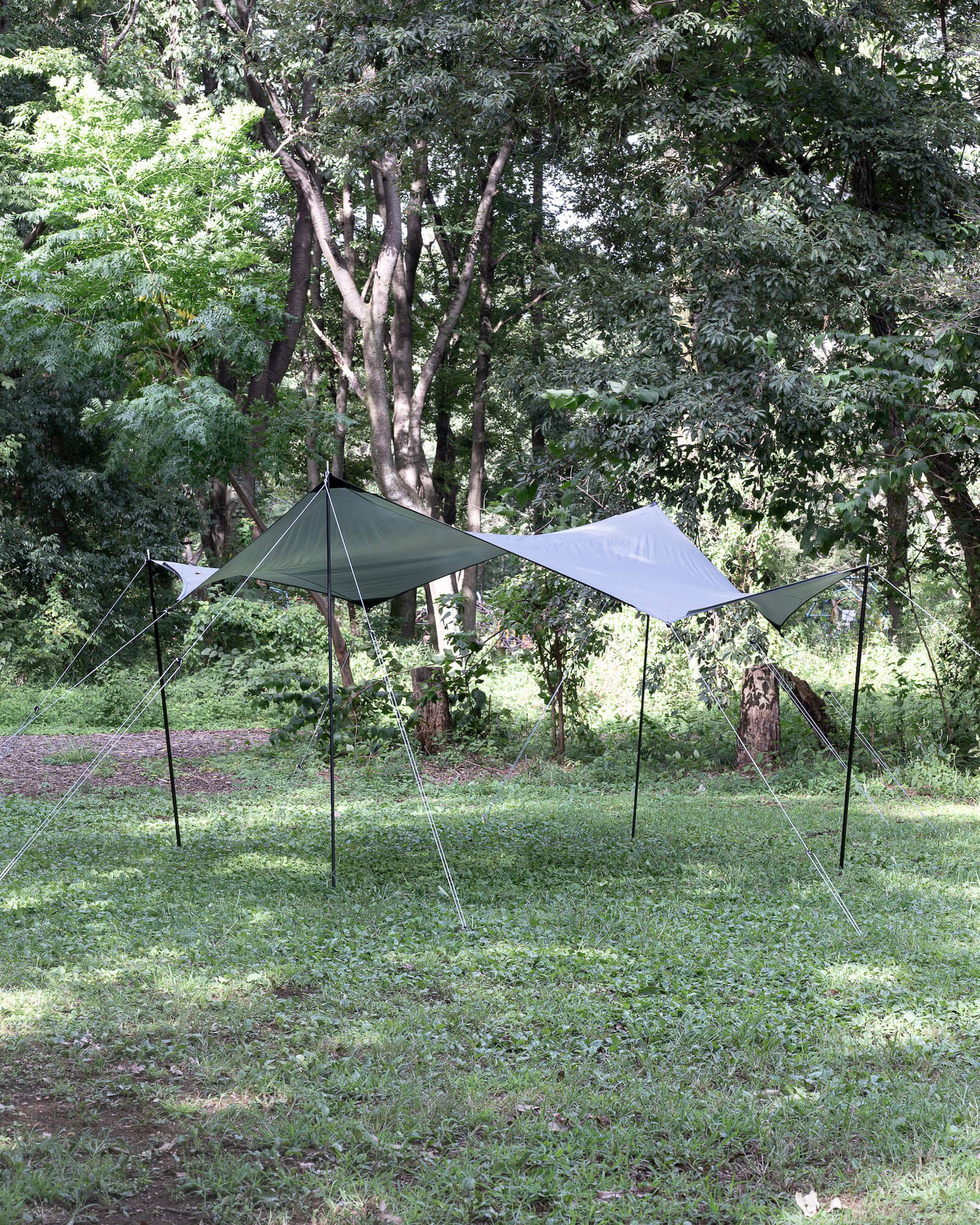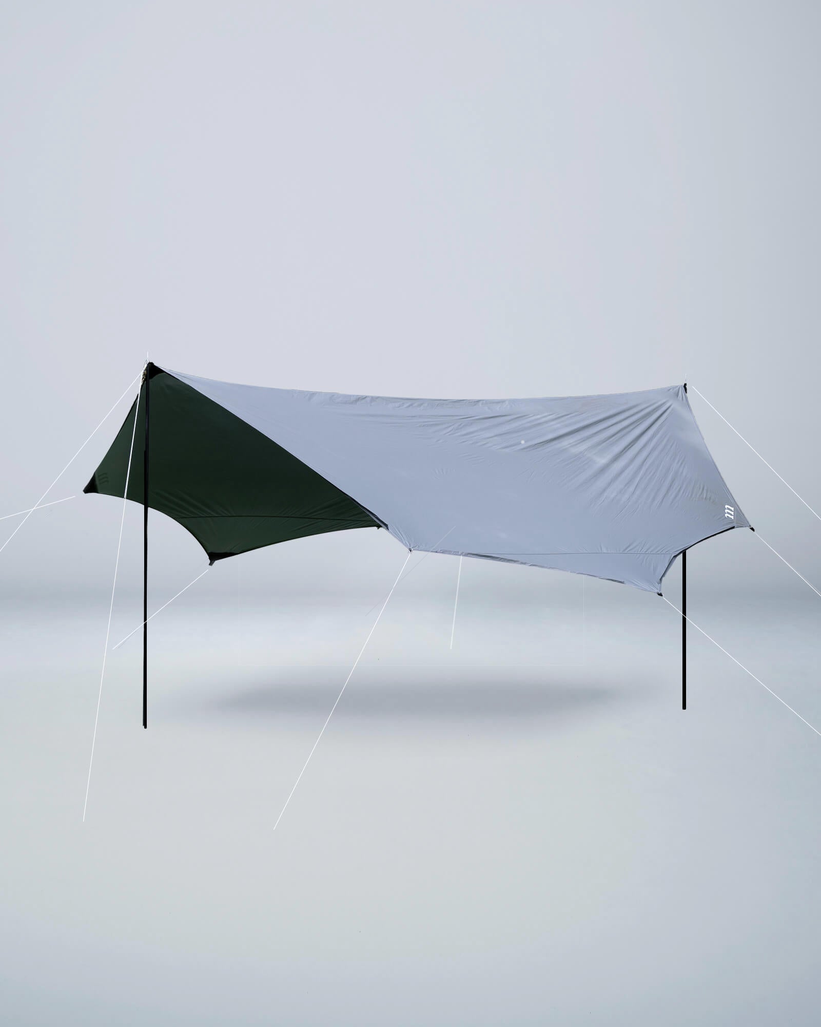 遮光性と排水性に優れたアシンメトリー形状のタープです。生地の裏面にシルバーカラーのPUコーティングを施すことで光の透過を極限まで抑え、濃い影を作り出します。フチには雨どいが付いているので、コーナー部分から雨をスムーズに排出できます。左右非対称の形状により、テントに連結させた設営に適しています。様々な気候・地形でテントと組み合わせて最適な形状を作り出すことができます。2〜4人に適したサイズです。