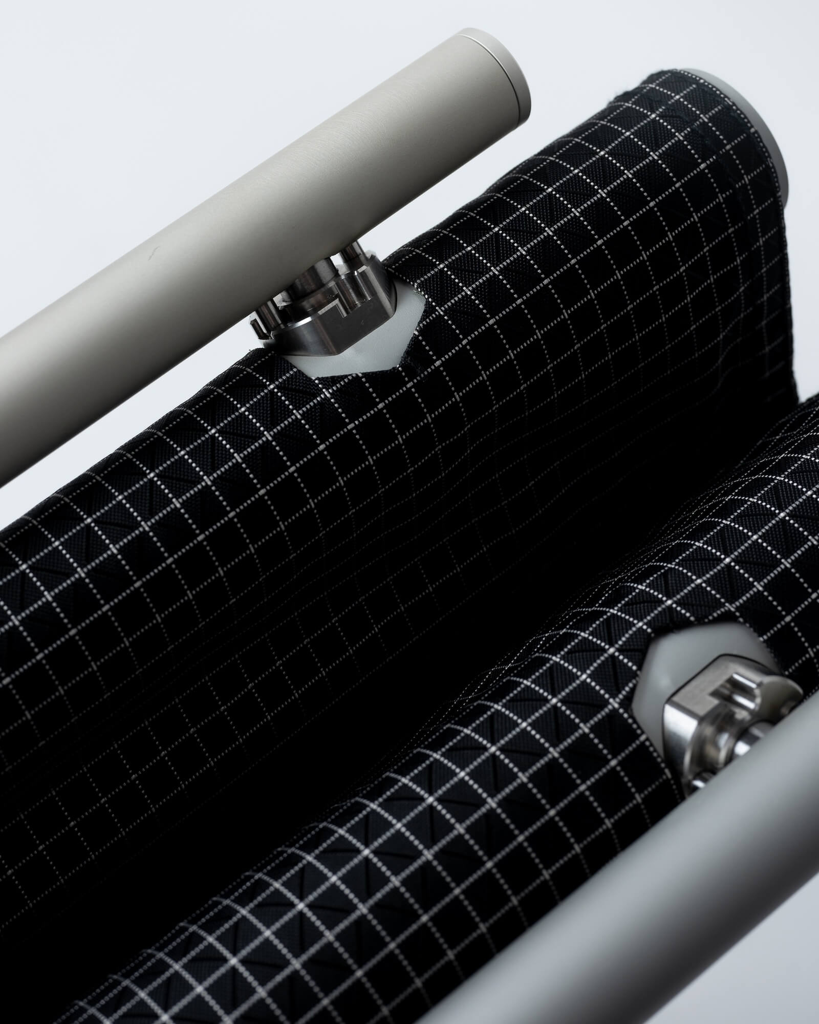 -アルミ製フレームに「White Mountaineering」と「muraco」の両ブランドロゴをレーザー刻印