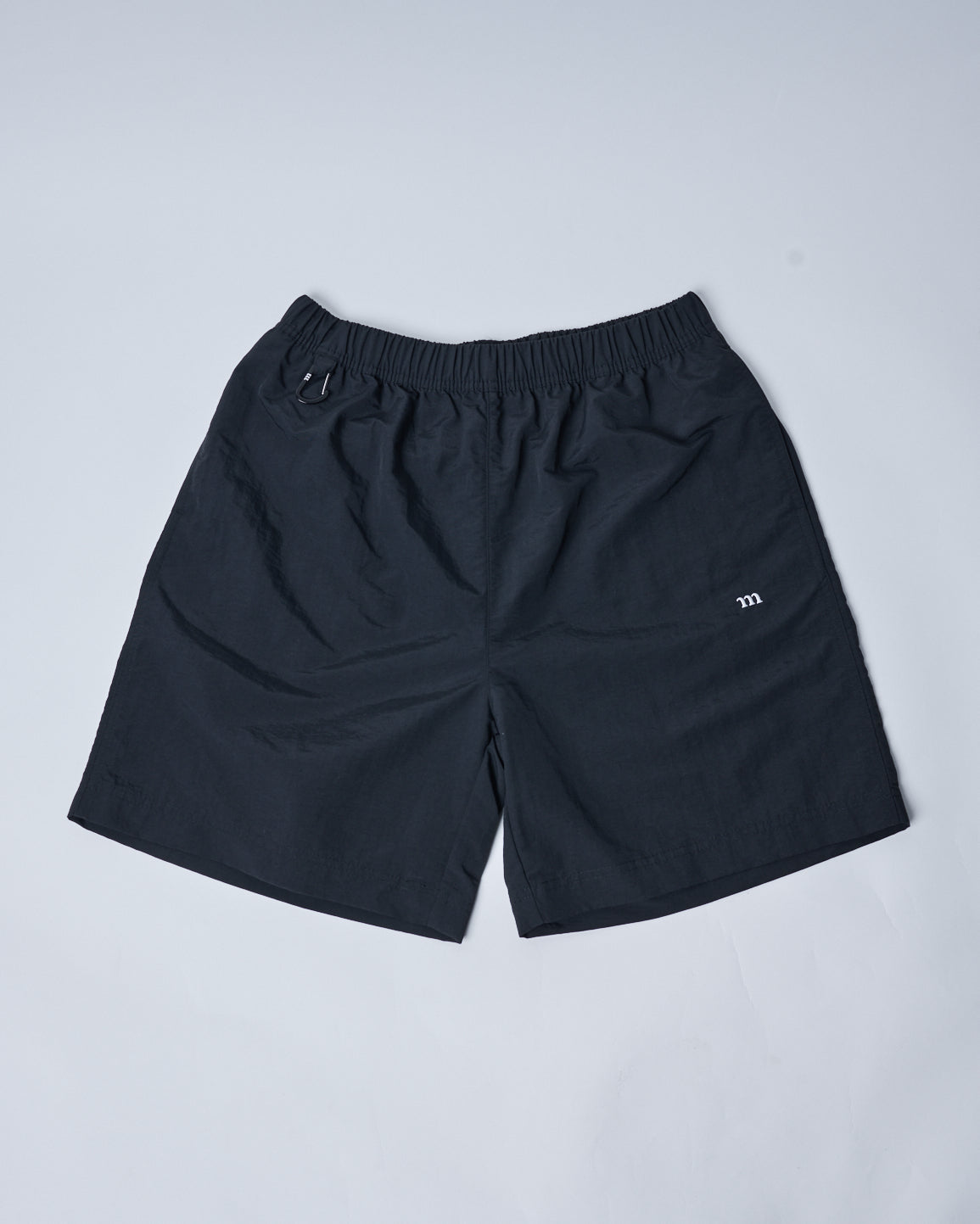 軽量なナイロンを使用したショートパンツです。ウエスト部分はゴムで伸縮性を持たせ脱ぎ着がし易く仕立てました。フロントには鍵などを引っ掛けらるようにカラビナを付属し、背面のポケットには開閉がし易いようにmuracoのテントで採用しているジッパープルが付属しています。正面にさりげなく小さな"m"ロゴを刺繍であしらいました。凹凸のある生地は肌離れがよくこれからの汗ばむ季節に最適です。軽量でストレスのない履き心地です。