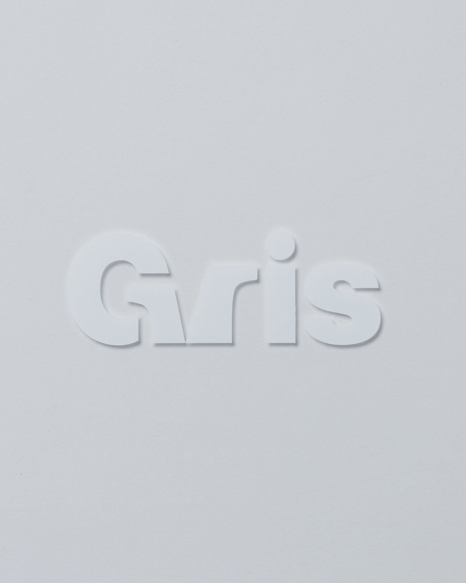Grisのロゴタイプの形のカッティングステッカーです。屋外でも貼ることができます。文字部分のみが残ります。