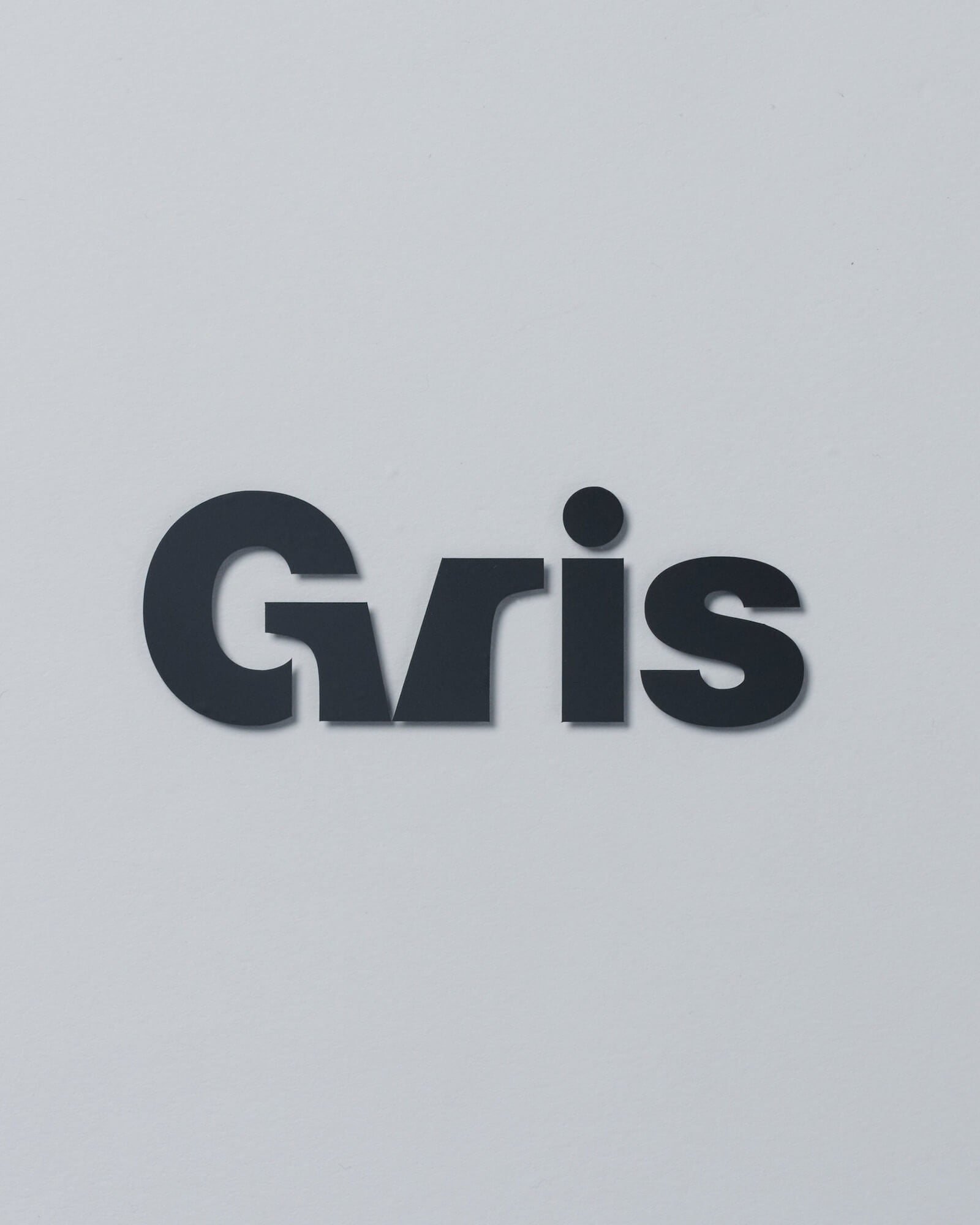 Grisのロゴタイプの形のカッティングステッカーです。屋外でも貼ることができます。文字部分のみが残ります。