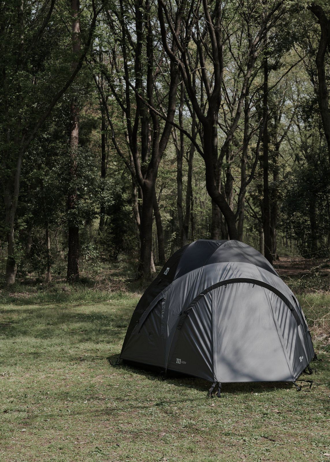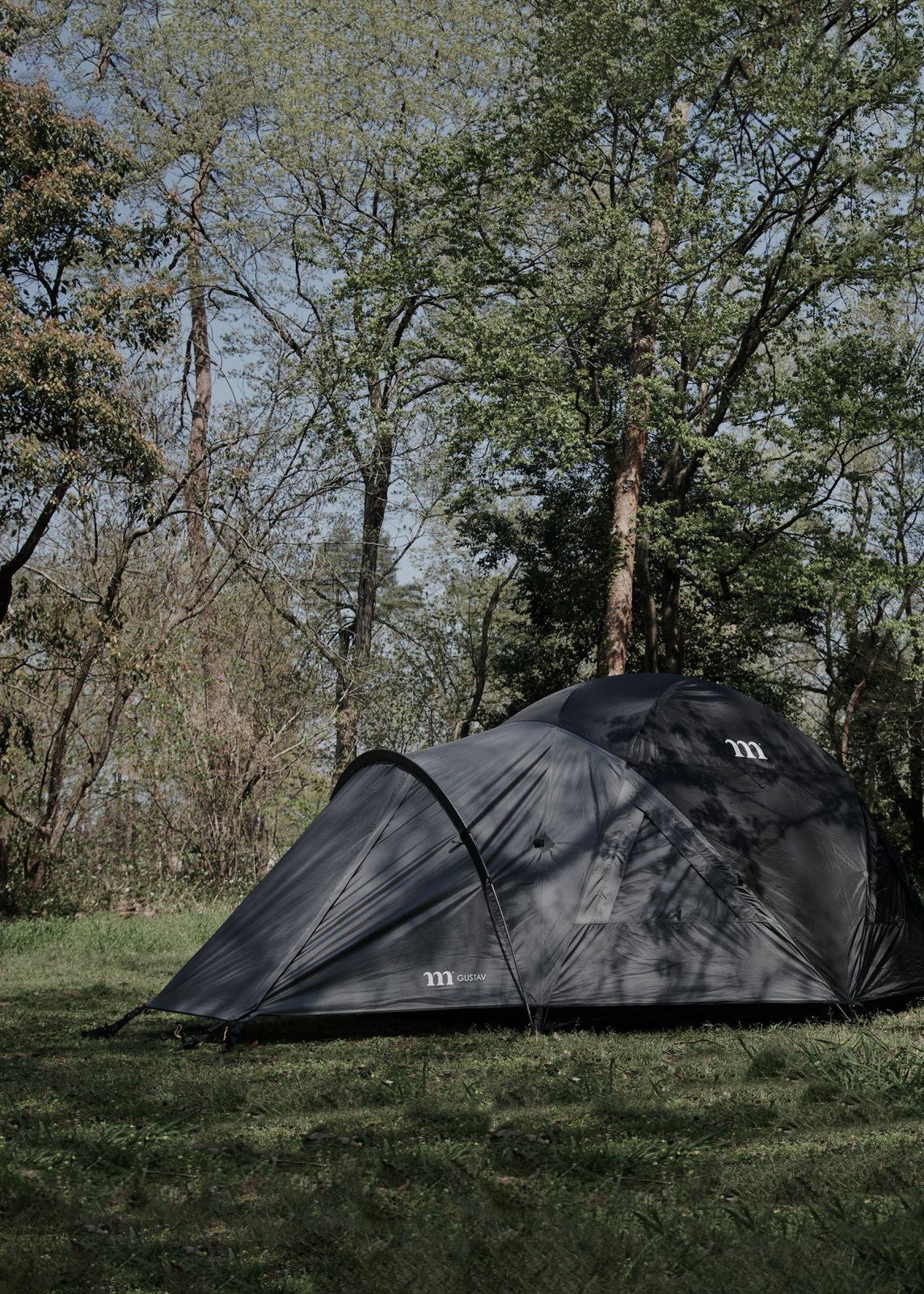 台型で広い面積を有した前室は、収容人数分の荷物を置くのに充分なスペースです。2本のペグで固定します。夜間でも荷物の出し入れをしやすいよう、前室部分の生地はグレーにしています。