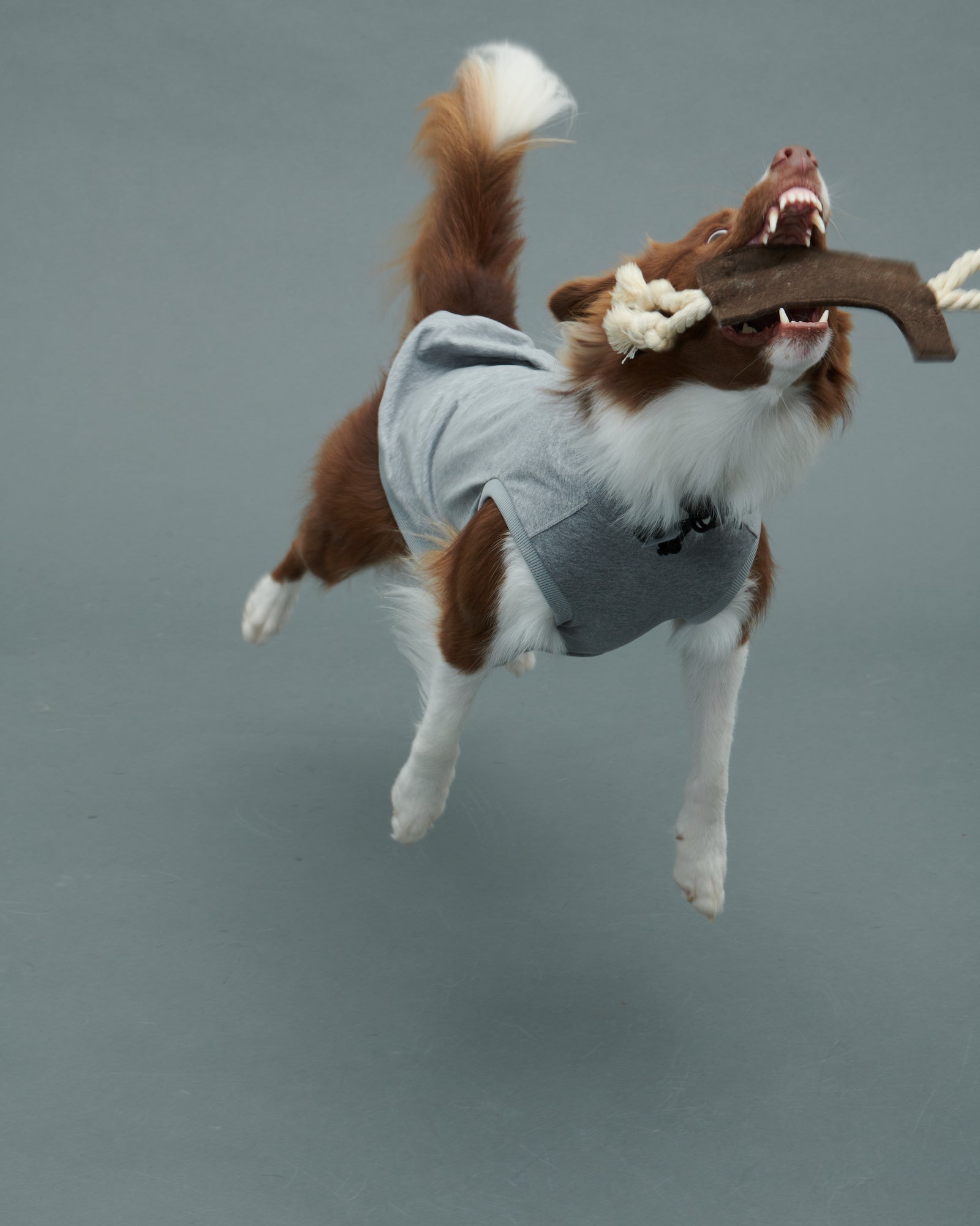 コットンロープにロゴマークのフェルトが付いたおもちゃです。噛んで引っ張って丈夫な歯を作ります。愛犬との引っ張りっこによるコミュニケーションに最適です