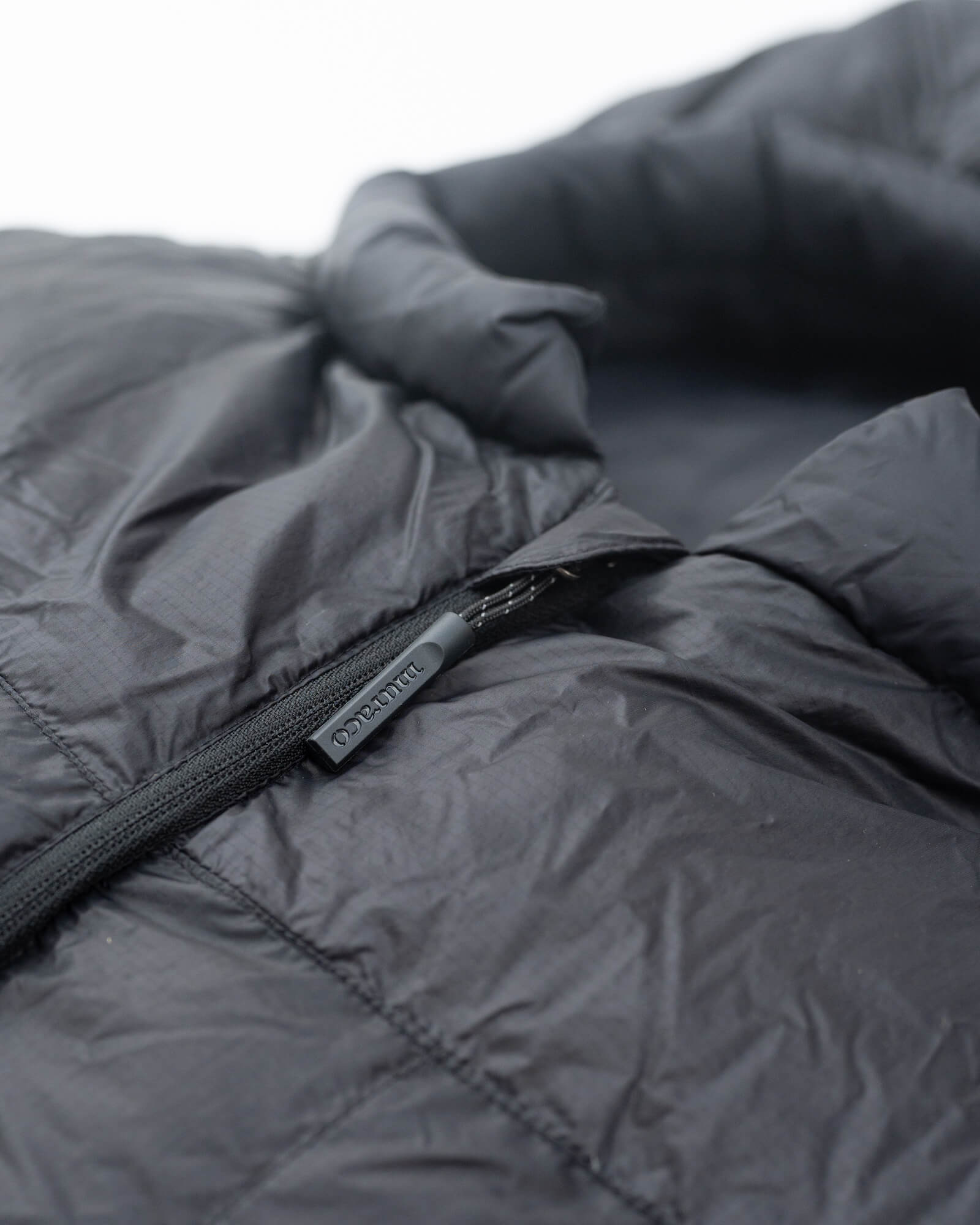 ジッパーの裏にテープを施すことで素早い動作でも布が噛みづらい仕様です。スリーピングバックを扱う際、極薄の生地をジッパーが噛み込み、開閉を行えなくなる懸念や強く噛み込んだ場合に、生地を傷める可能性があります。ジッパーの裏にナイロンテープを施し、噛み込み原因となる生地の発生軽減と、噛み込みが起きた際の“生地へのダメージ軽減”を実現しました。