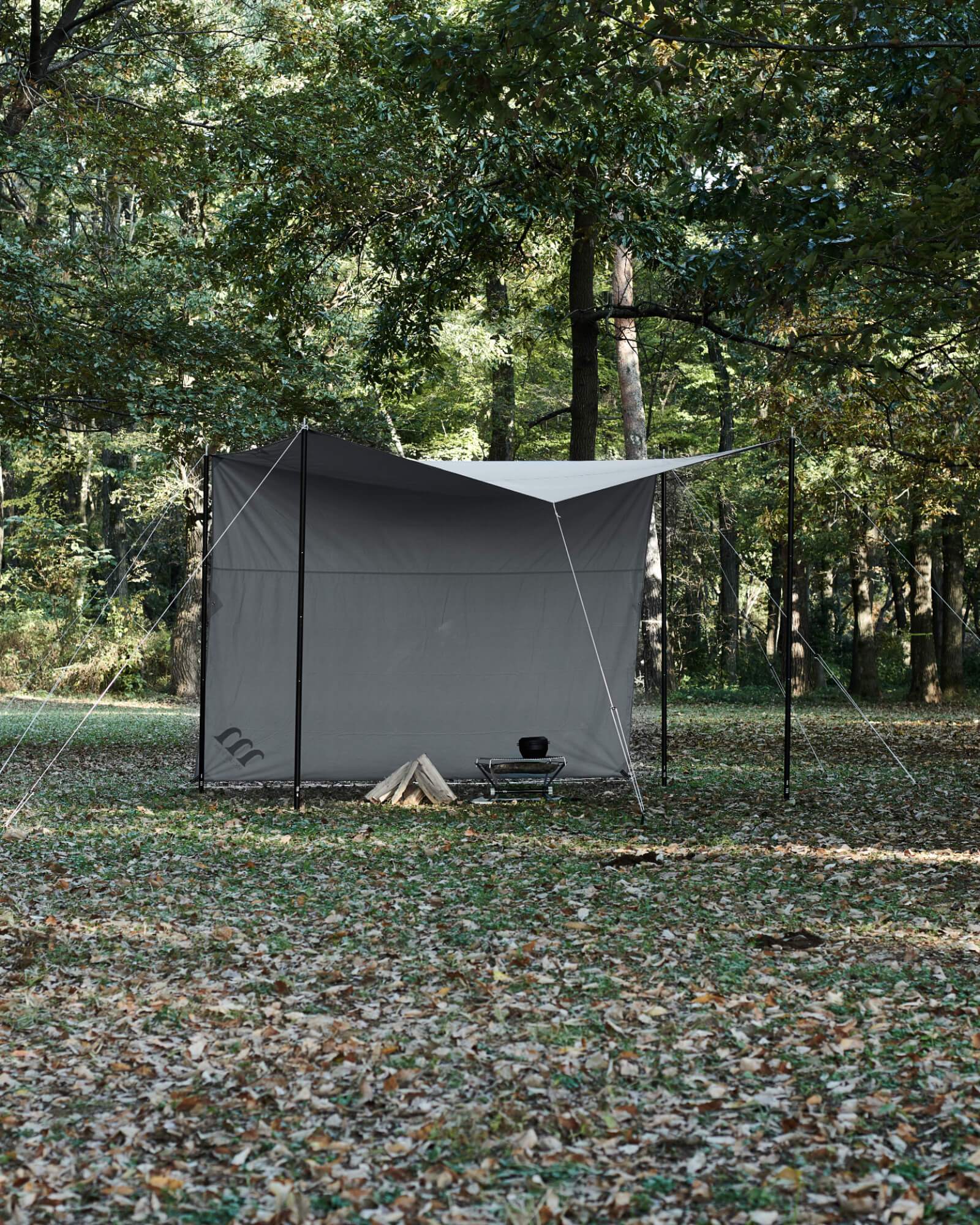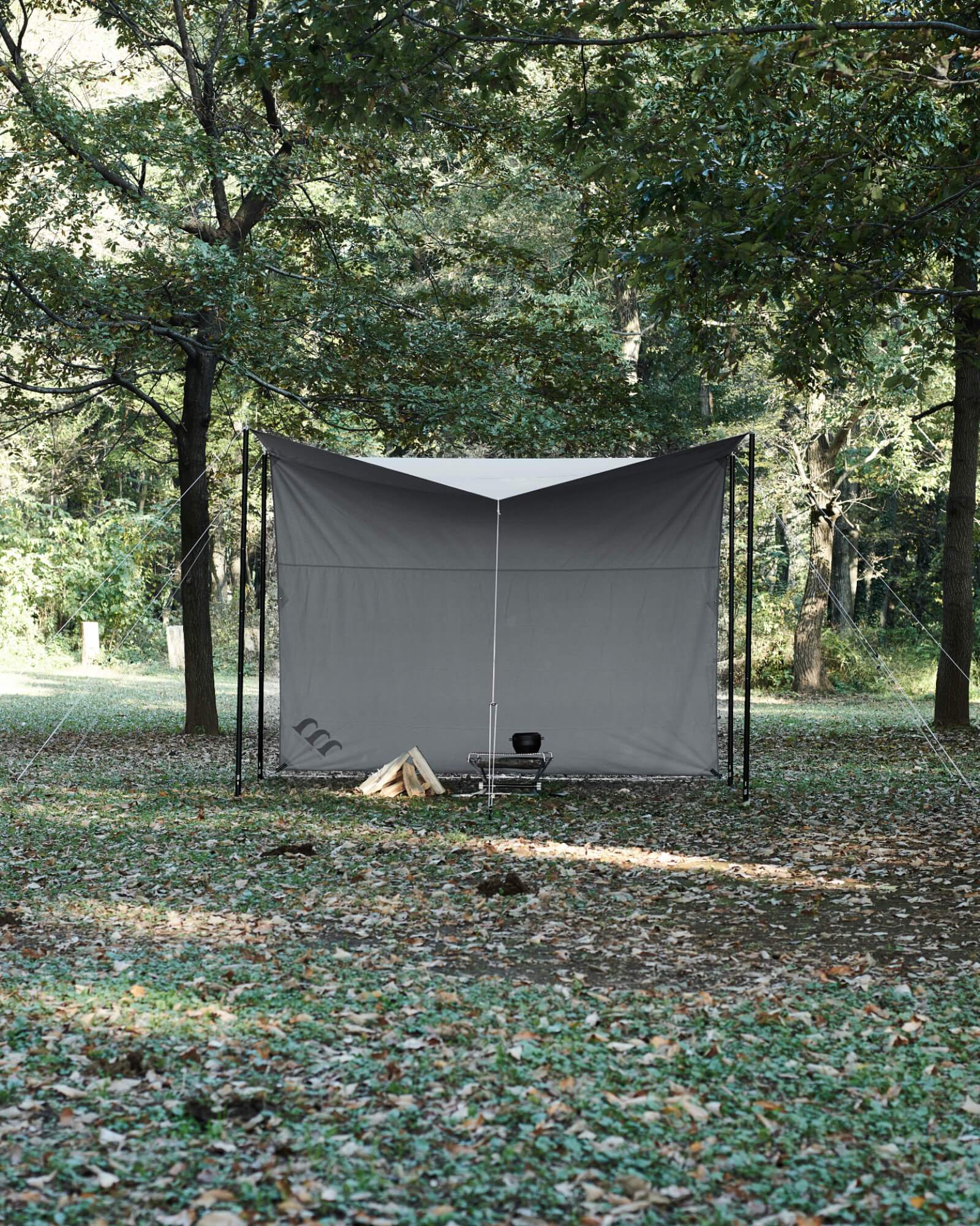 *焚火の炎が生地に近いと穴が開く可能性があります。炎をタープ生地から1m以上離してください。